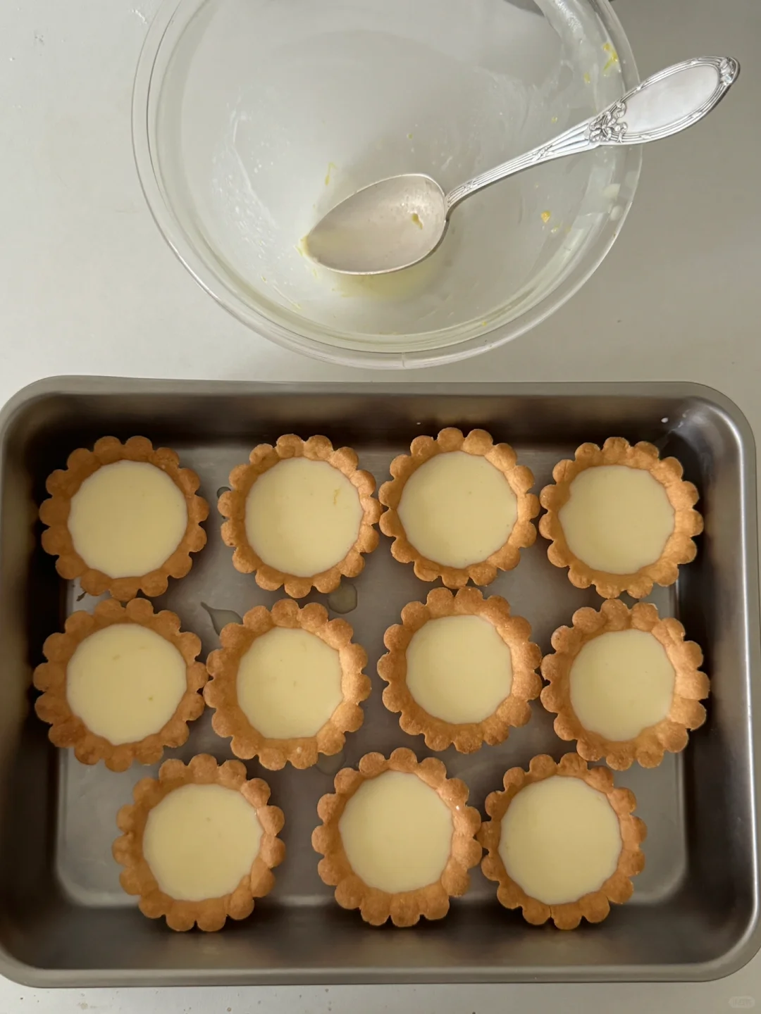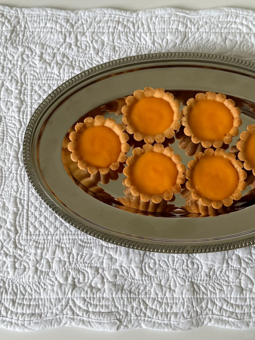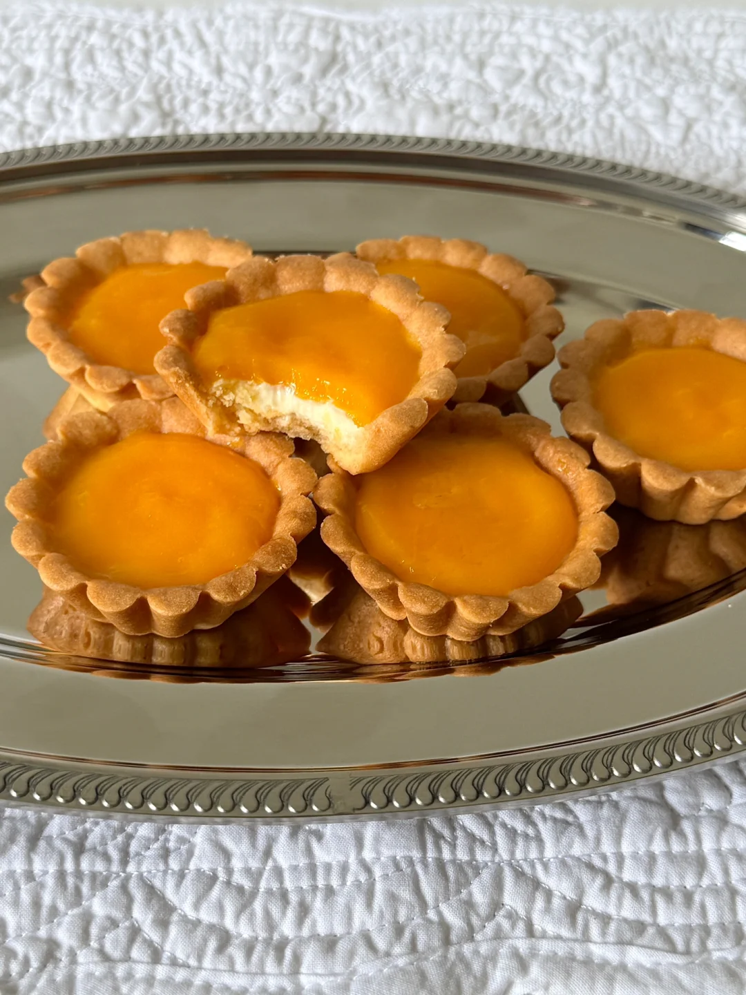 一个属于夏日的甜香清新挞。 芒果的香甜、柚子的清新与柠檬的酸香。 顶部是芒果柚子啫喱,中间是柚子柠檬馅,杏仁挞皮。 [挞皮]能做9-10个 黄油48g 糖粉20g 低筋面粉80g 杏仁粉12g 盐0.5g 全蛋液15g [柚子柠檬馅] 柚子果茸4g 灵感柚子巧克力 24g 淡奶油90g 柠檬皮适量 [芒果柚子啫喱] 芒果肉100g 柚子果茸8g 糖20g Nh果胶2.5g · 挞里倒入柚子柠檬馅,放冰箱冷冻半小时 接着再挤入芒果柚子啫喱,再放冰箱冷藏2小时