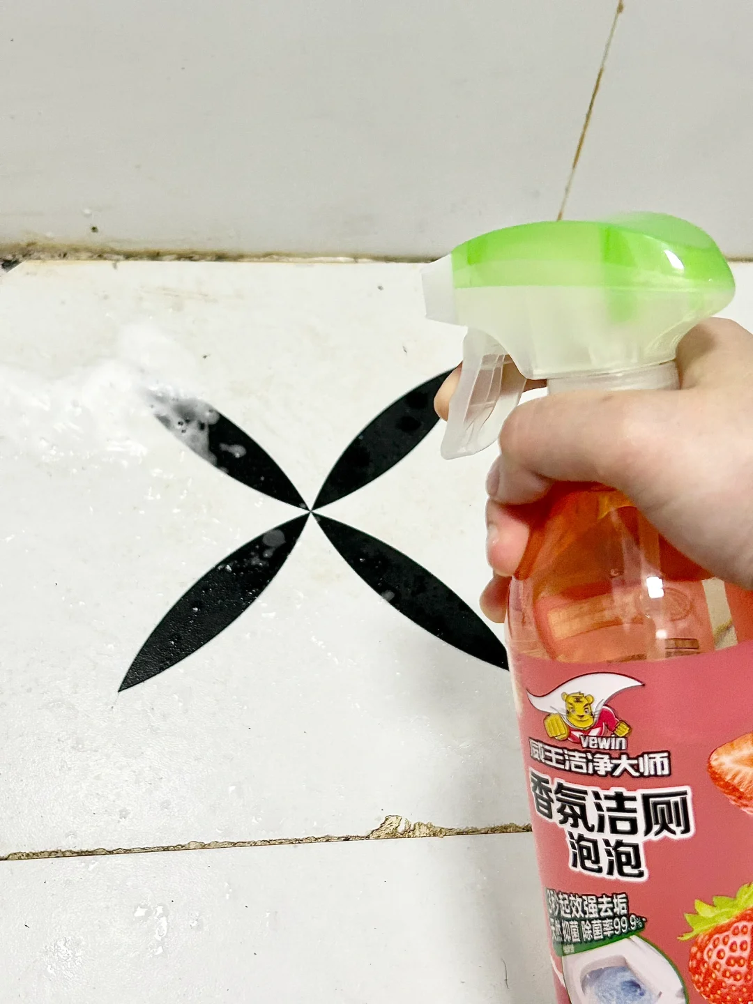 往厕所边上、瓷砖缝隙边上那些黄黄的脏东西喷几泵泡泡🫧