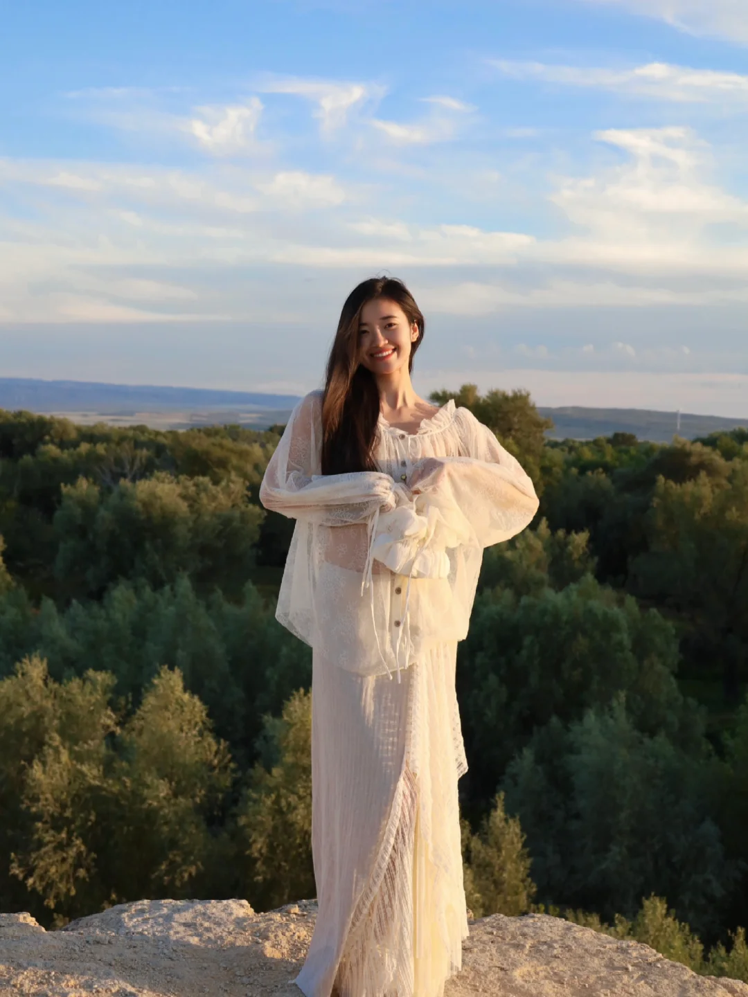 白衫是薄瓷的容器盛着心跳与呼吸绿裤是柔韧的藤缠裹着骨骼的倔强~柳丝拂