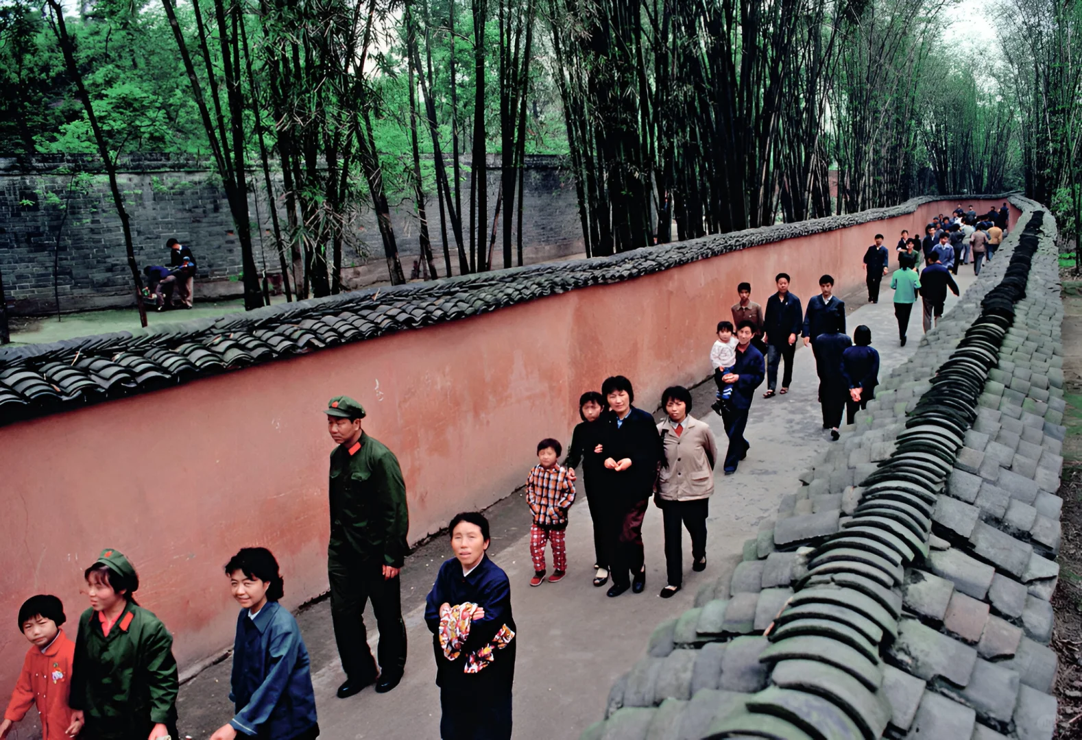 第一次来到中国,巴贝免不了要去长城和天安门广场,拍下北方天空微妙的秋光、前朝的红色土门及紫禁城墙。1980年在成都杜甫草堂,巴贝拍到了经典的中国红。在他的镜头里,街道上群众的衣着都是深色单调的:工人的深蓝色工服、军人的卡其绿色军装以及普通老百姓的无性别的灰色中山装,而桂林,是有着“奇妙的美丽绿蓝色”的风景之地。在中国这个多彩国度里,巴贝足迹遍及北京、上海、四川、广西、新疆、香港、澳门等地,拍摄时间跨越46年,从1973年走到2019年,《中国的颜色》收录了巴贝拍摄的三百余幅彩色照片,他的摄影作品,让很多人看到了“童年时期中国的真实色彩。”
