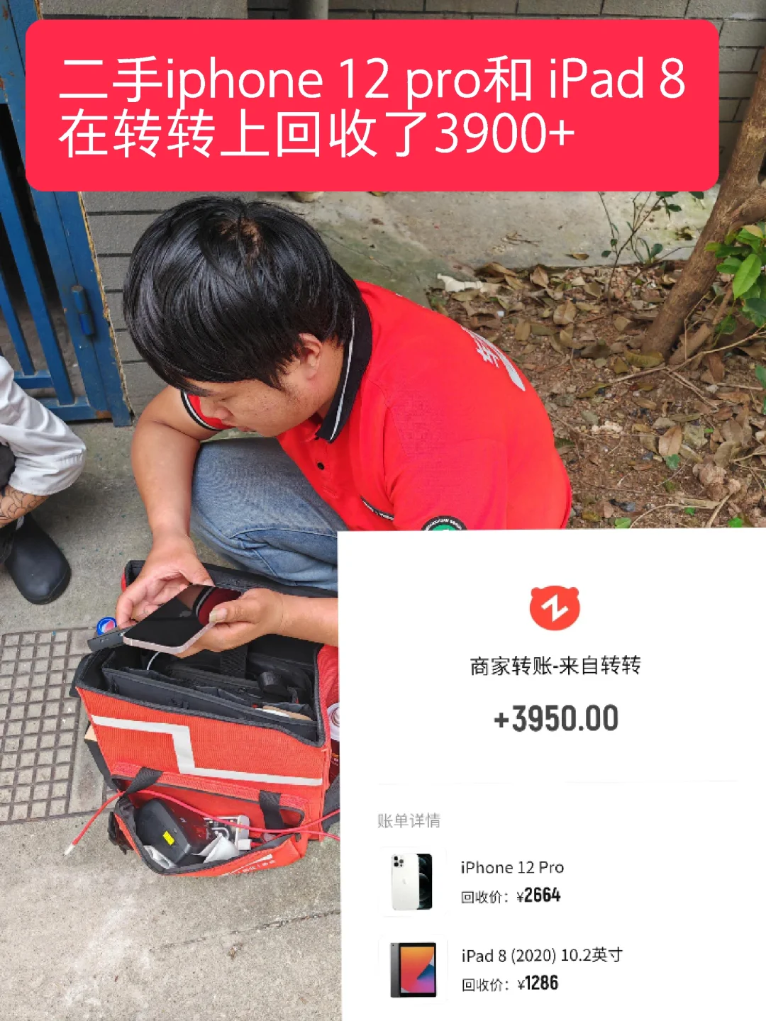 最近吃瓜手机不好用,老是卡顿,我就打算把旧电子产品回收了换新的。我打开转转App,下了个回收单,小哥没一会儿就上门了。现场检测后,小哥立马给我转了💰 。真不敢相信我的二手iphone 12 pro 和ipad 8 居然卖了三千九百多! 小哥说他上门免费,对报价不满意可以当场取消订单。这么贴心的服务,我真的惊了。