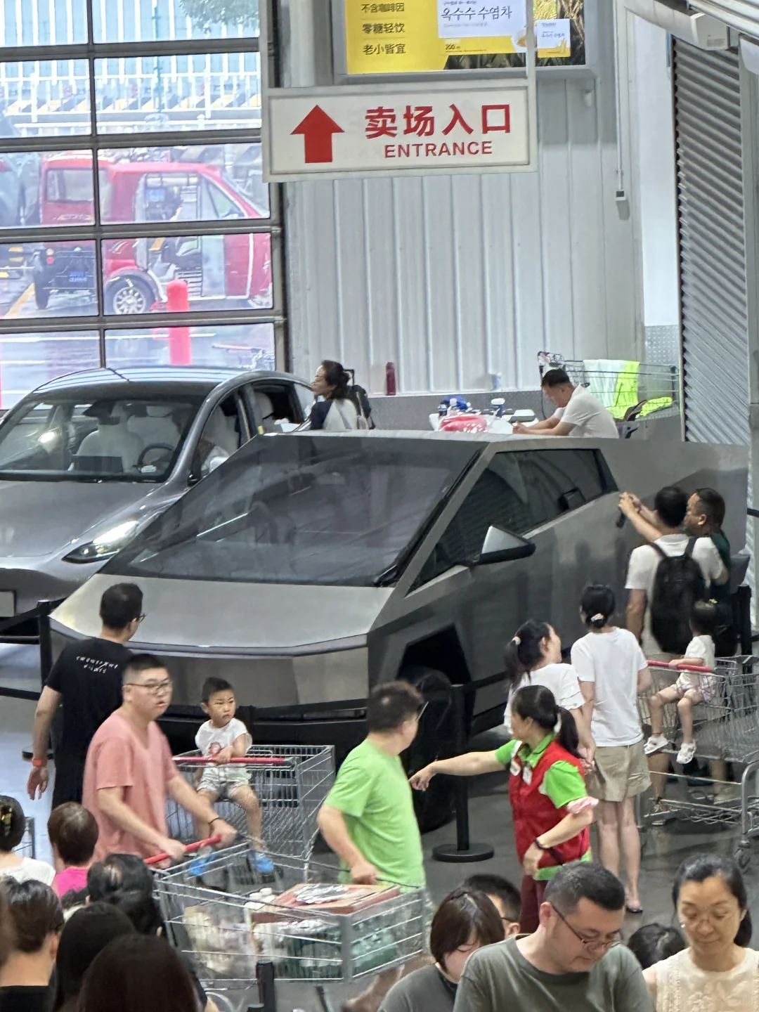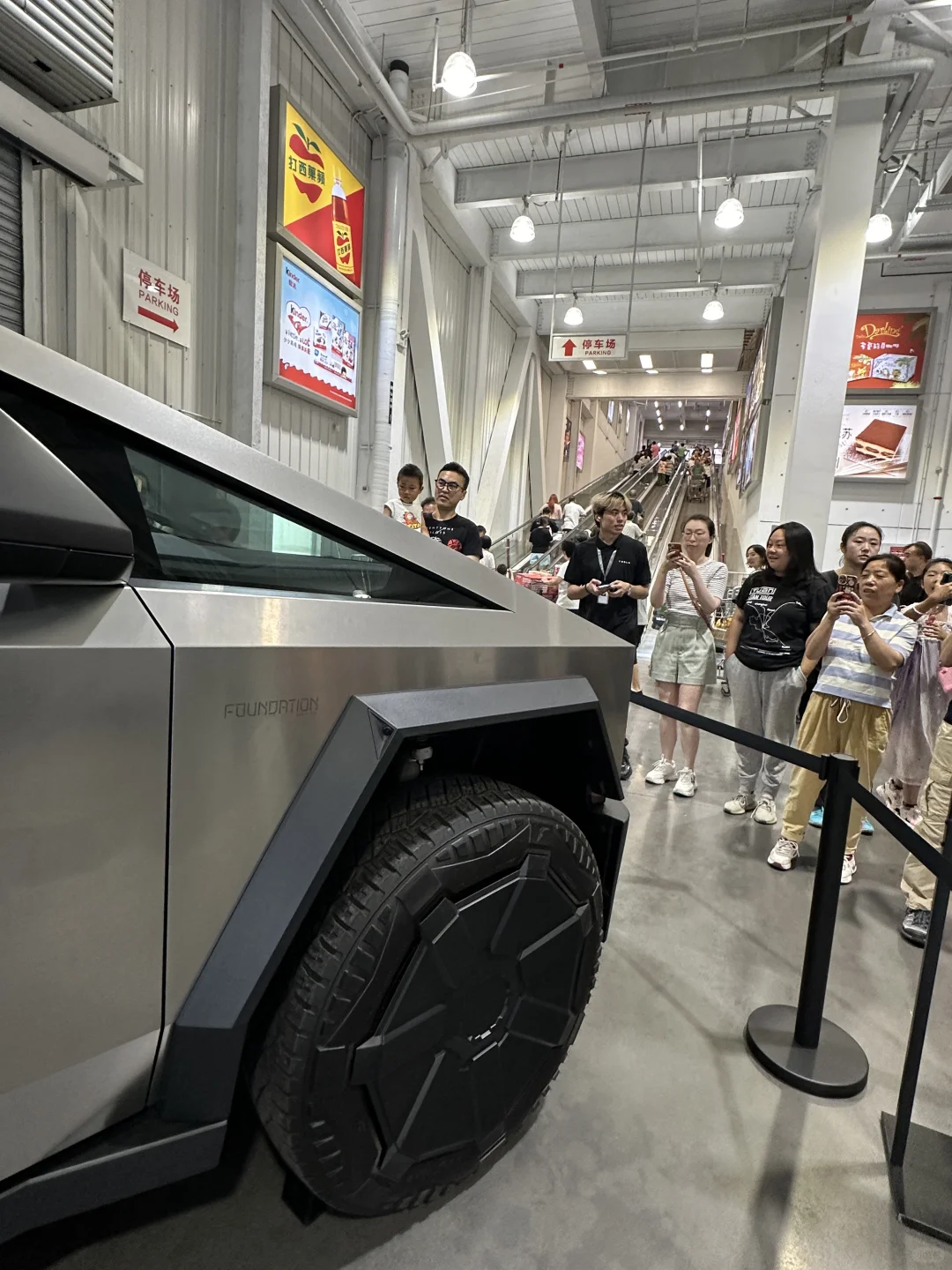 讲真 三年前就预定了 但进入中国遥遥无期 现场看 绝大多数车位无法满足这个大家伙 单单一个雨刷臂就要一米多长 车四角充满尖锐的金属 太酷了 耶太不像能在中国马路上开的 看个热闹吧 我的订单1000块反正还挂着没退