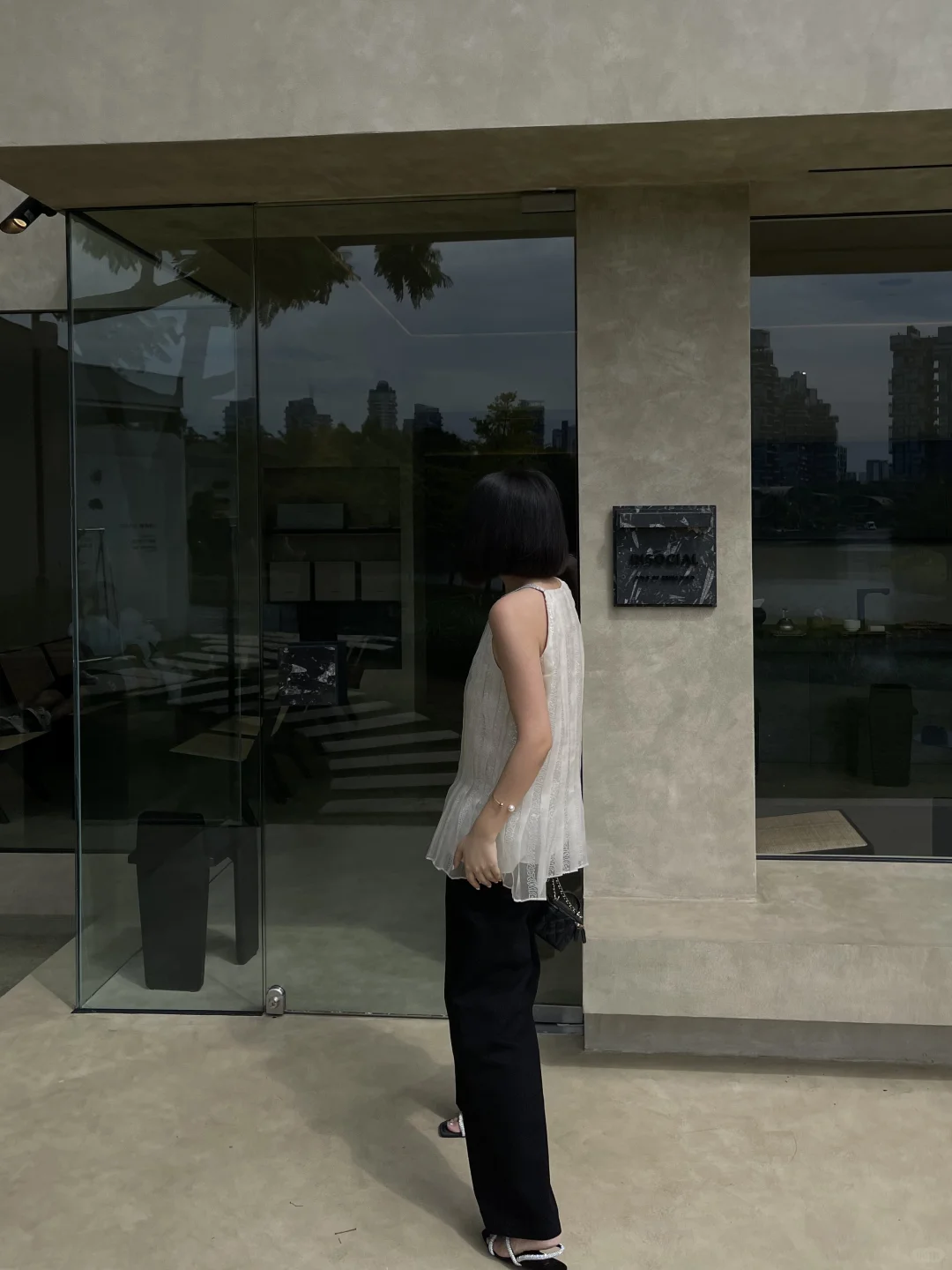 夏天在自然公园里,穿白色背心搭配黄色牛仔裤,妥妥就是甜美少女本女。白色背心清爽又