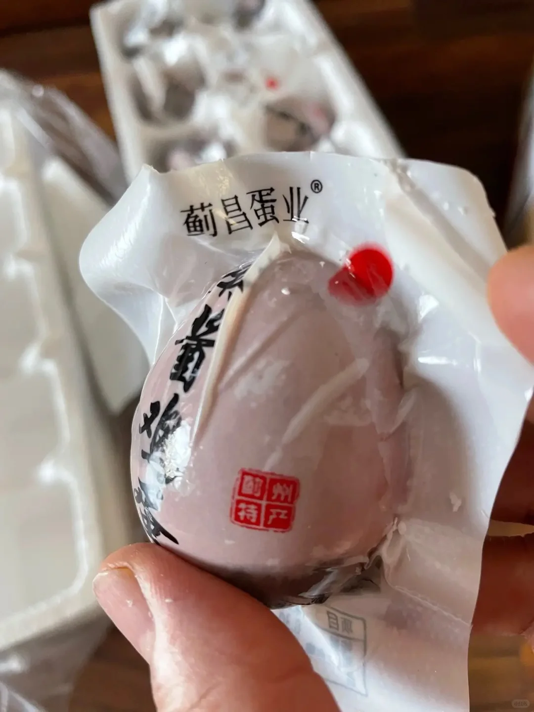 是正宗天津蓟州的特产,麻酱味很浓,蛋清咸味适中,没有特别咸,感觉空口吃也不至于太踩雷,用来配粥也很巴适,蛋黄沙糯,独立包装,上班上课来不及带上一个也很合适,强推!![喝奶茶R]