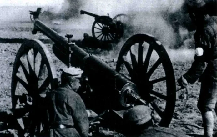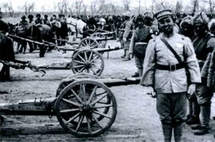 图9:奉军雇佣军白俄炮兵在炮轰直系军阀阵地