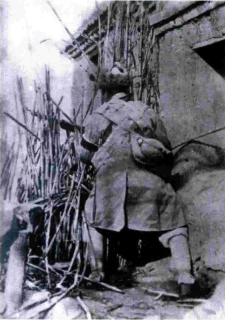 图12:1926年的战事中,一名躲在屋后的李景林部