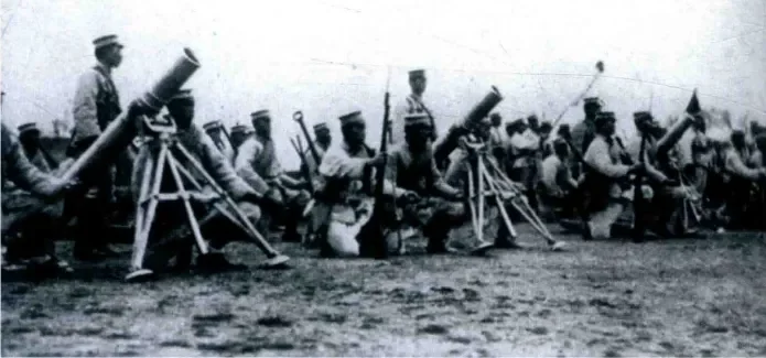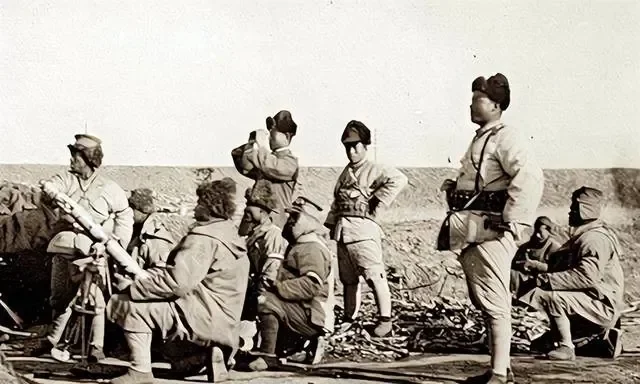 图8:奉军迫击炮连正在操作他们重型迫击炮~