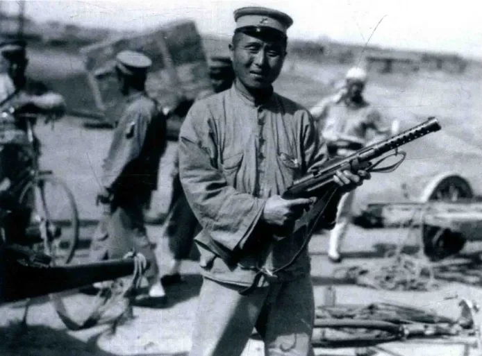 图5:一名奉军士兵展示他的伯格曼冲锋枪