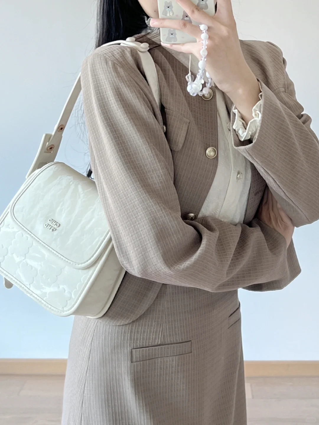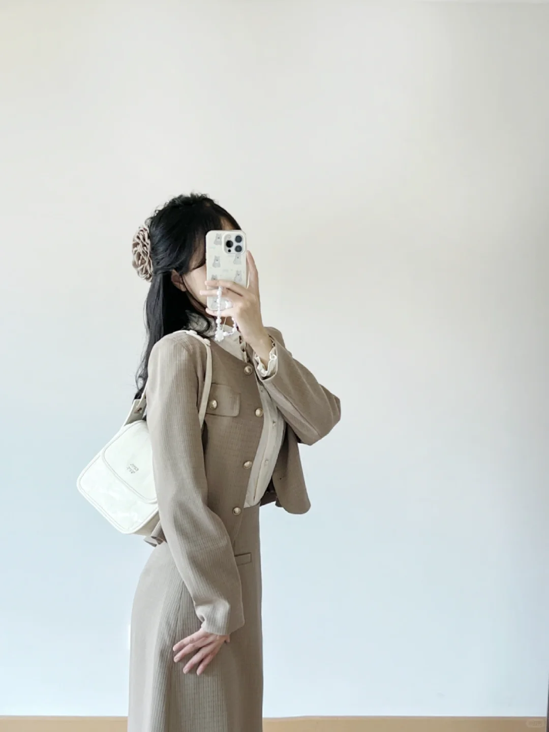 这家新中式茶馆也太会拿捏氛围了!亮面黑外套+黑丝的搭配,又酷又撩,露肩设计刚好中