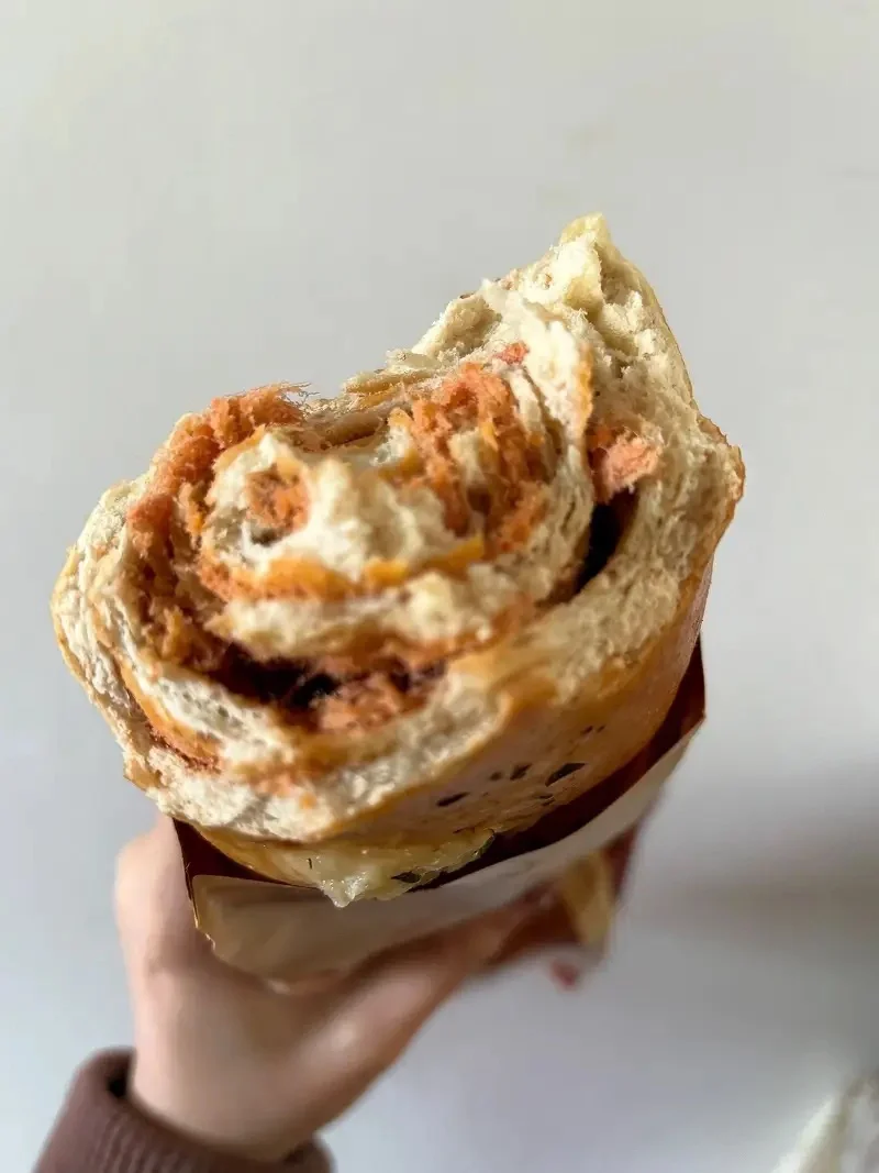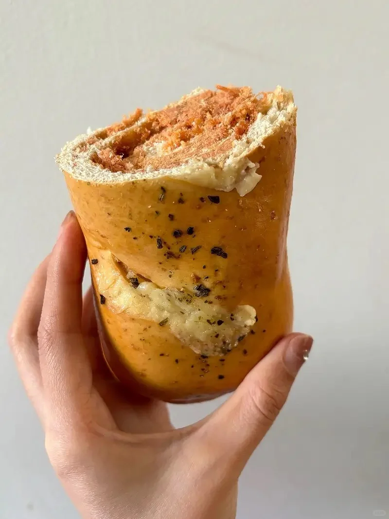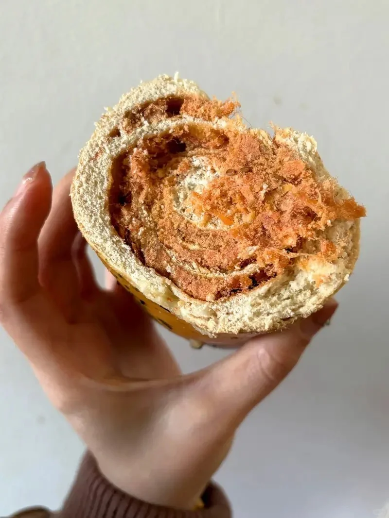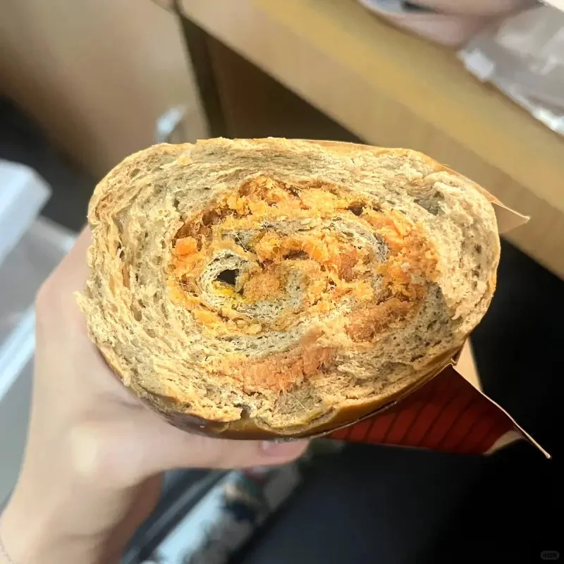 有两种口味,香葱肉松和咸蛋黄肉松,也可以选择是全麦粉还是黑麦粉,两种都是粗粮,可闭眼买,料很足,性价比很高