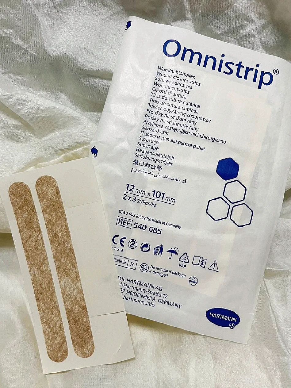 👉🏻说起来我还是比较幸运的,有个凡事都特别仔细的老公,在待产的时候就给我做了周全的准备,这个Omnistrip德免减张贴就是它专门给我准备的。