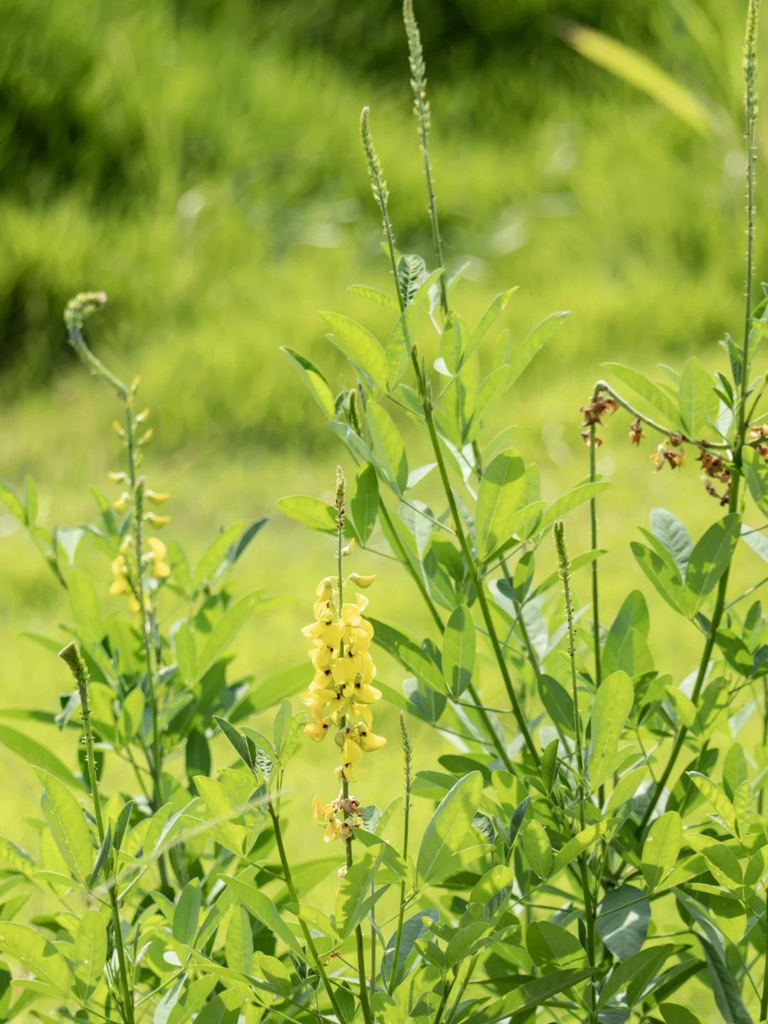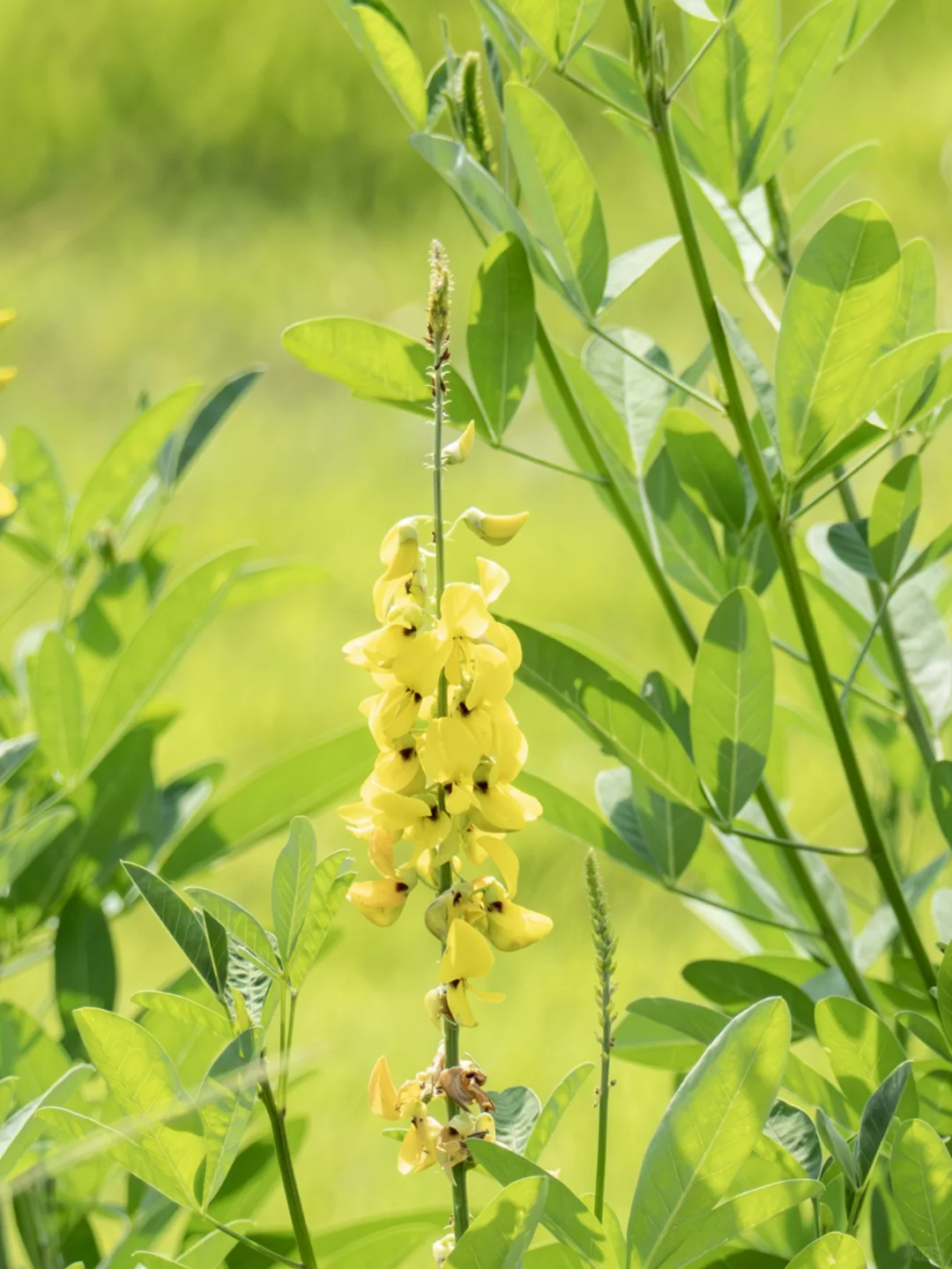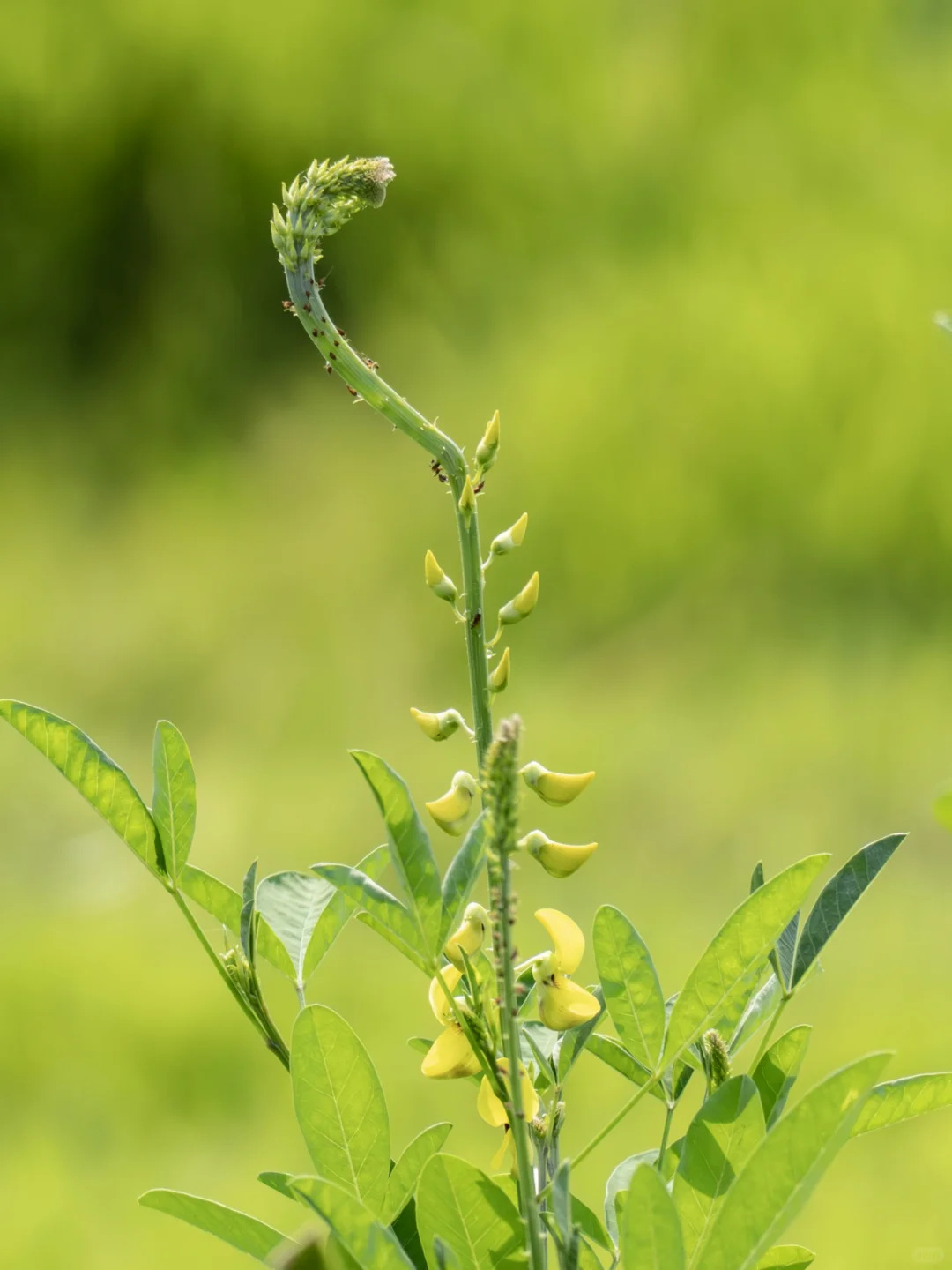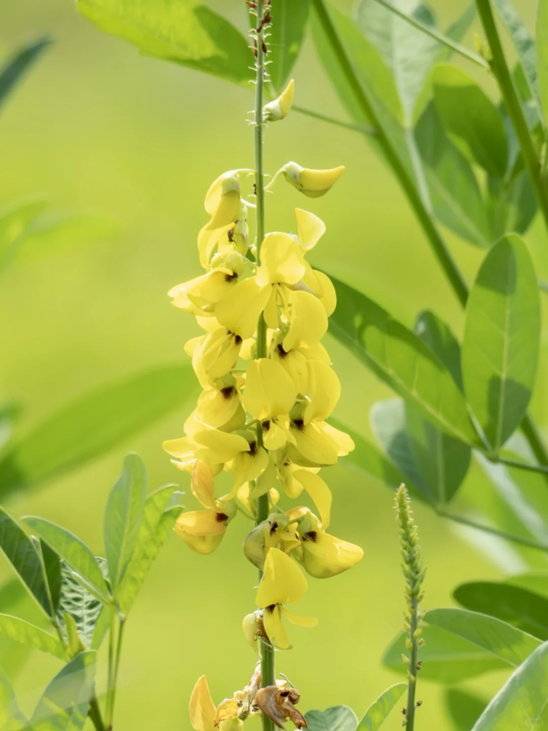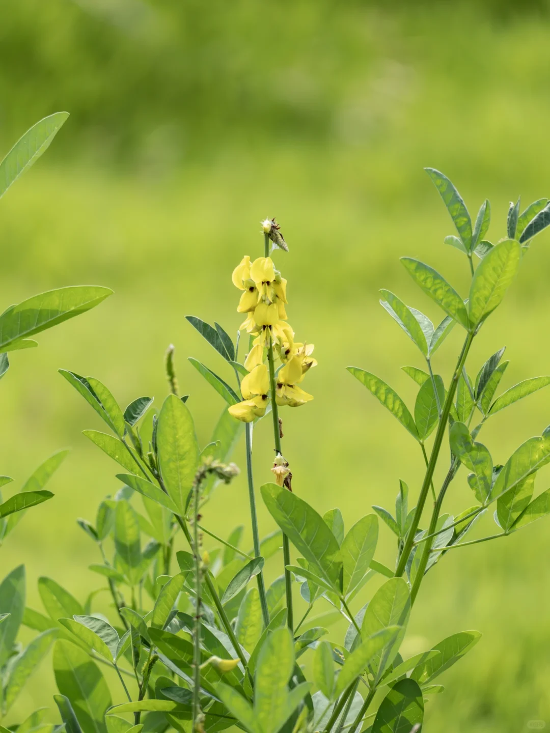 在盐田的一处农业基地旁,我偶然发现了几株开着小黄花的光萼猪屎豆。它的花冠金黄,宛如金丝轻抚,在微风中摇曳生姿。远远望去,这些小黄花仿佛是串串黄色的薰衣草,盛开在烈日下的田野间,如同阳光下的温柔梦境。