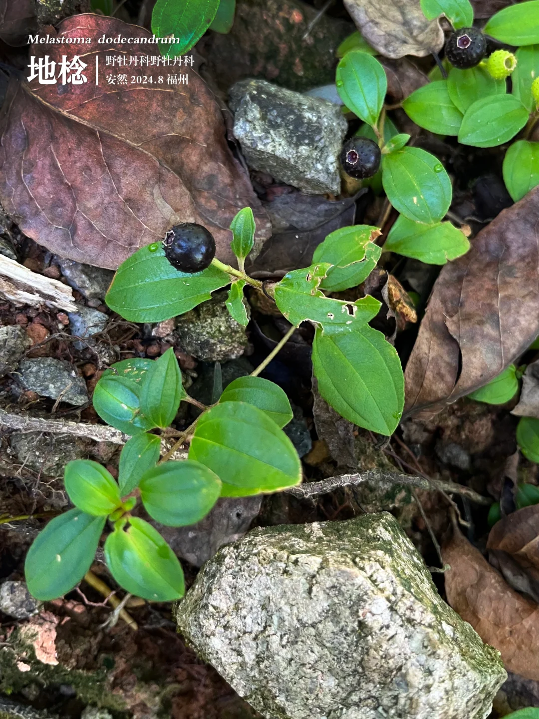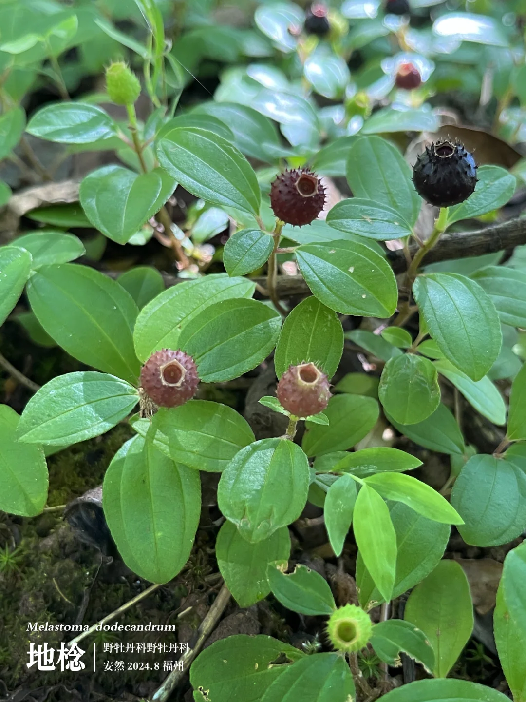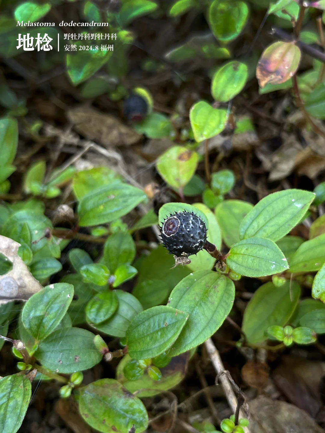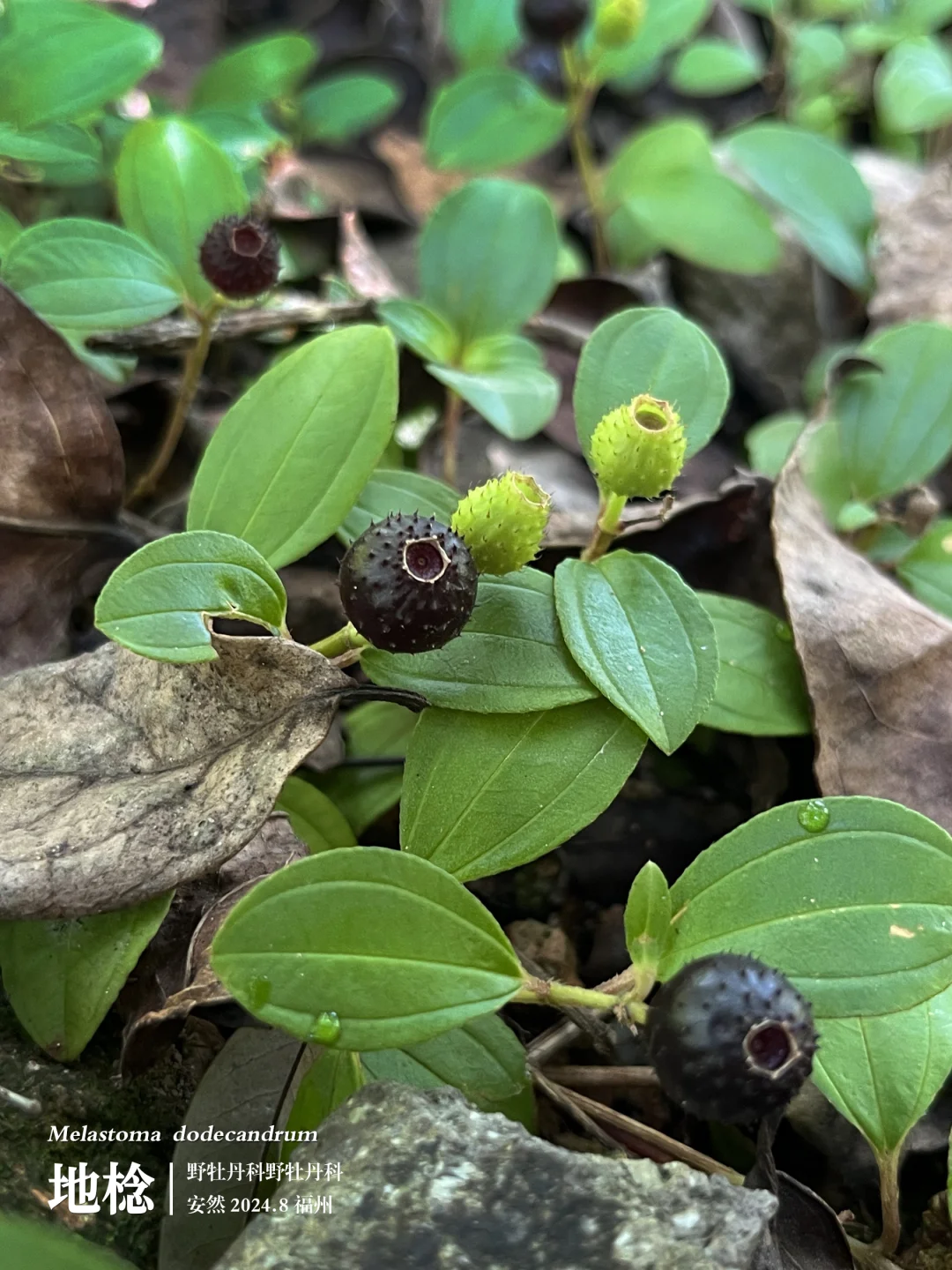 地棯( rěn)是野牡丹科野牡丹属的匍匐小灌木。它分布于中国贵州、湖南、广西、广东、江西等省区,越南也有分布。 生于海拔1250米以下的山坡矮草丛中,为酸性土壤常见的植物。 多次见过它的花和叶(可参考我的笔记“福州植物打标146 | 山间匍匐野花地棯”),但这次是头一回见到它的果实。 据说它那肉质的果实可食、可酿酒,亦可作为天然补钙食品。可惜我当天(24年8月3日)状态不佳,不敢随意尝试野花野草。 吃过的小伙伴可以分享一下它的味道哦[抱拳R][抱拳R][抱拳R]