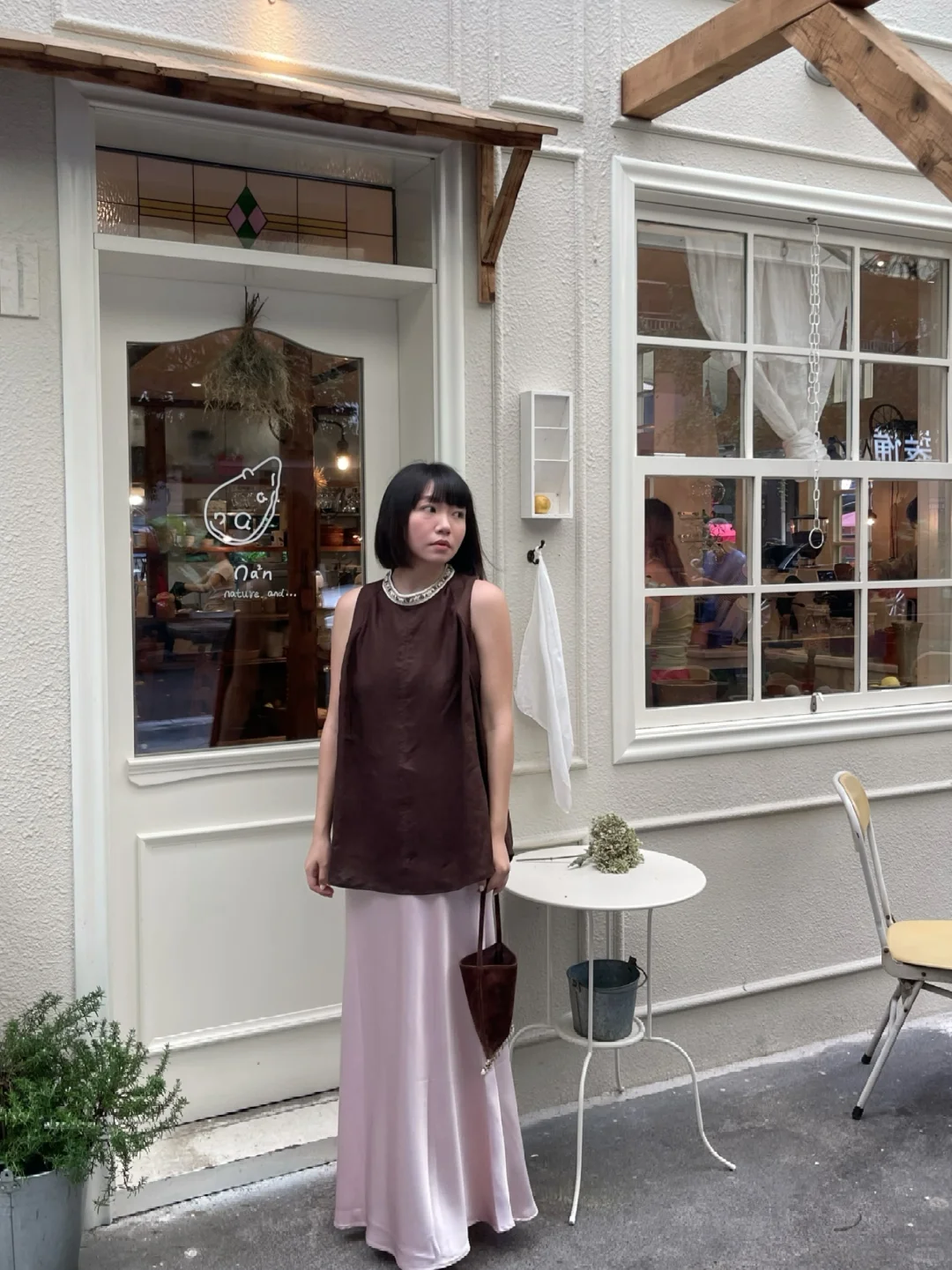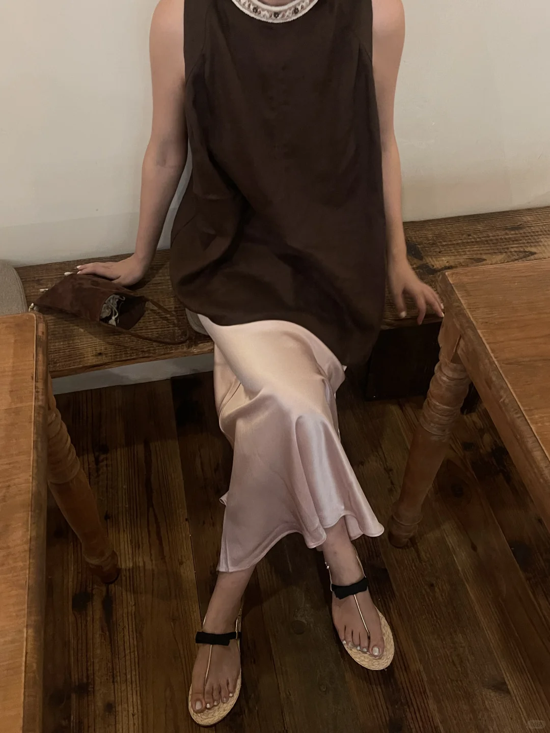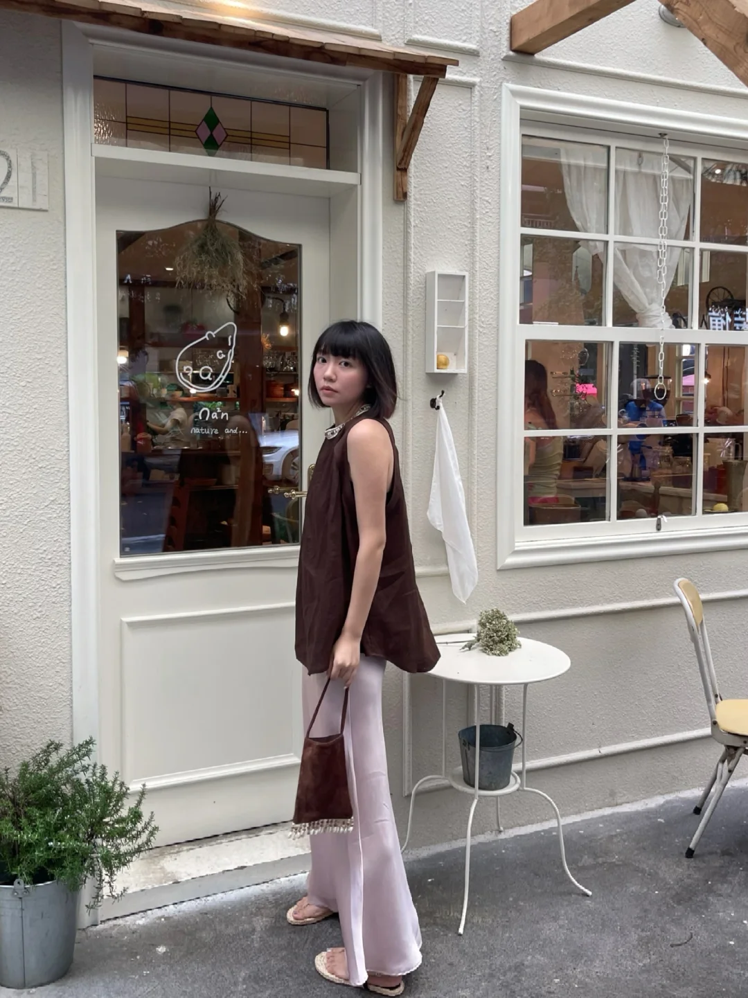 少女清新穿搭,黄色吊带裙搭配米色长裤,轻松惬意。