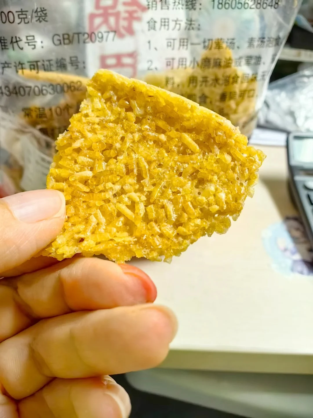 配料表有:大米,水,配料表还是很干净的,饱腹感很强,泡水软化可以当粥喝~