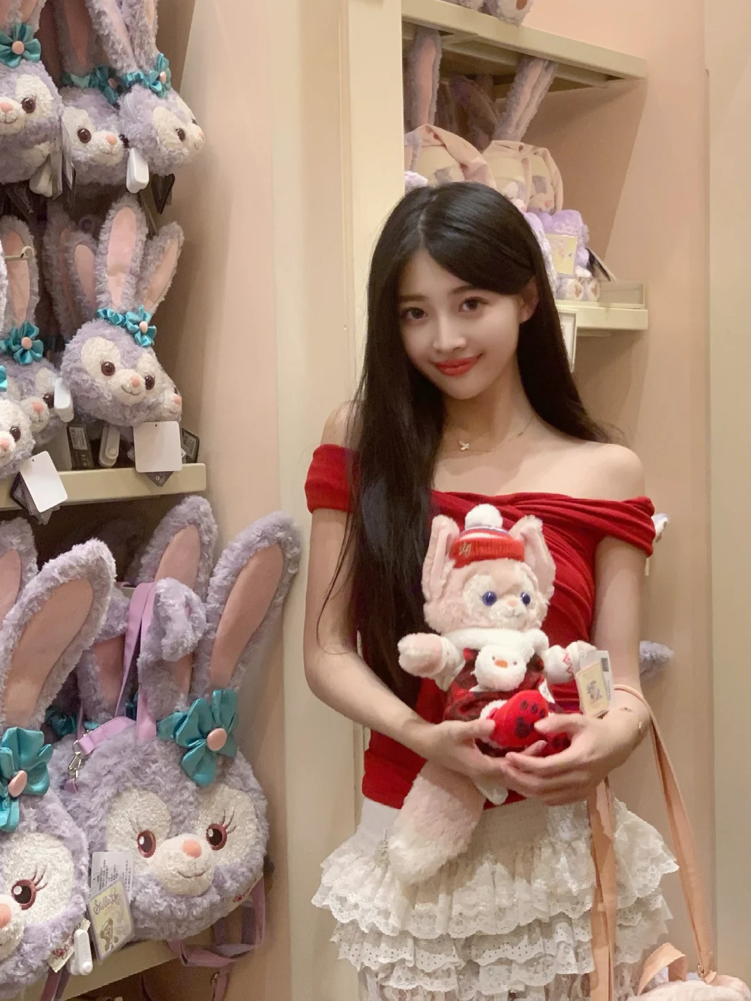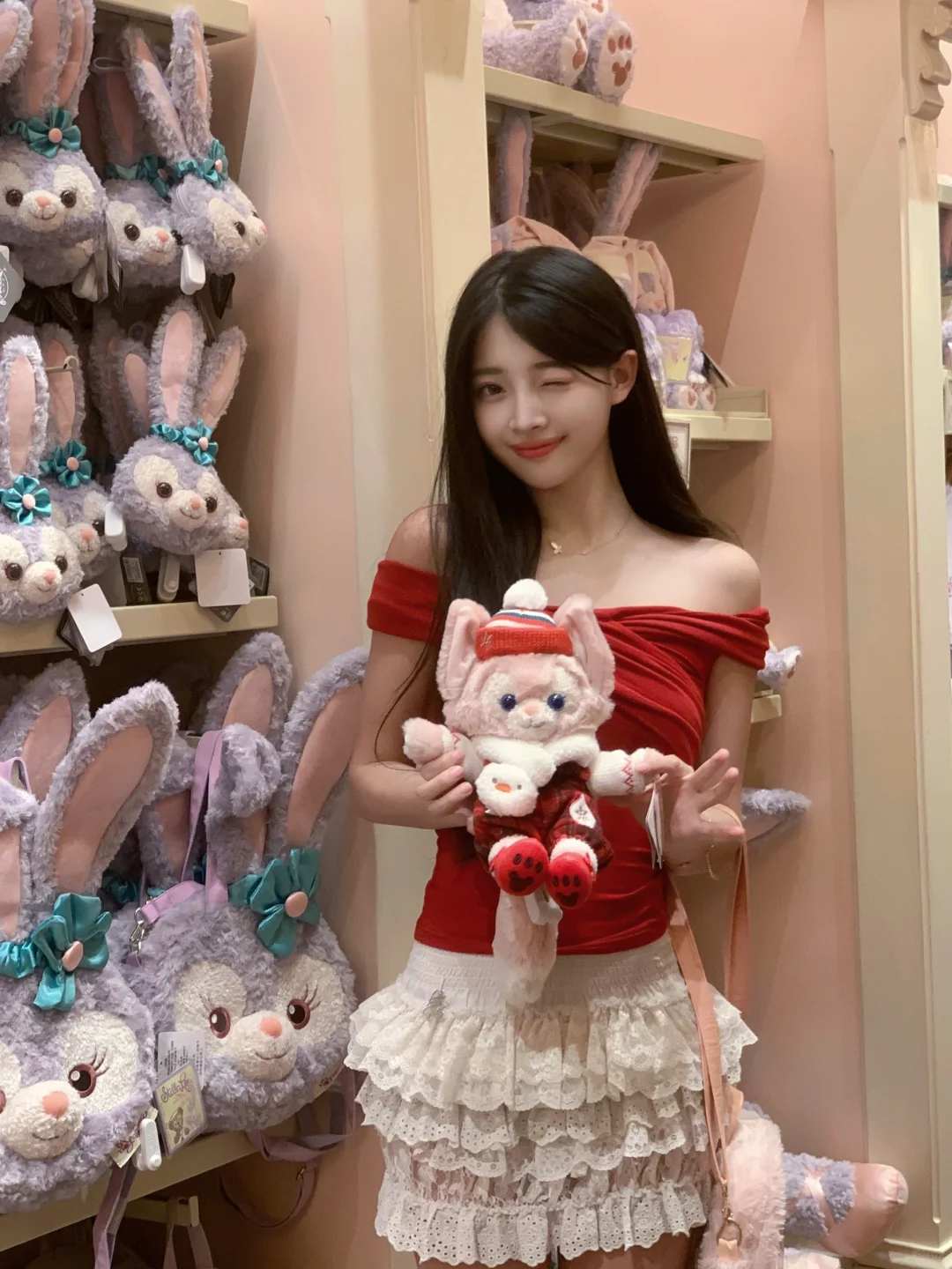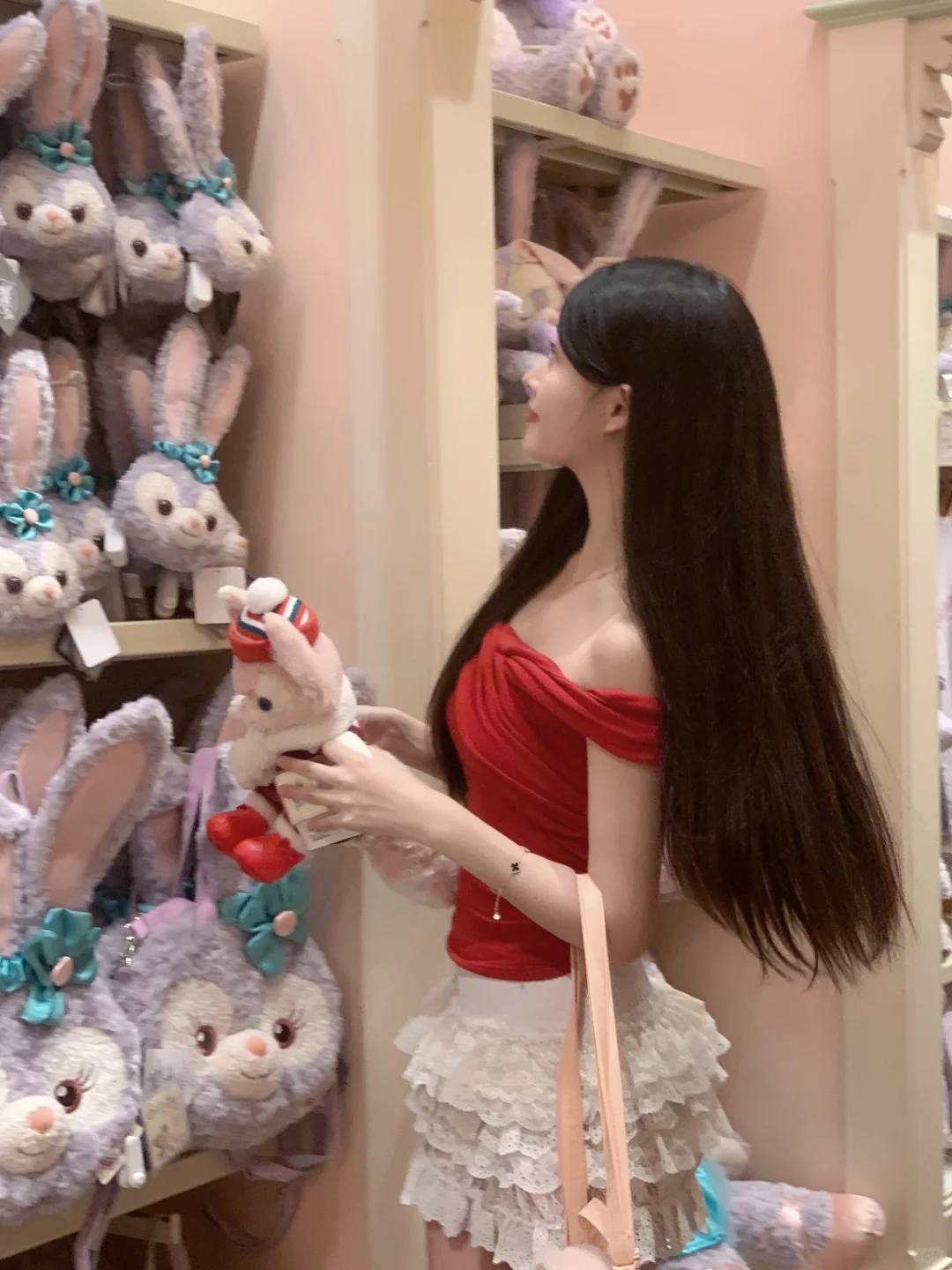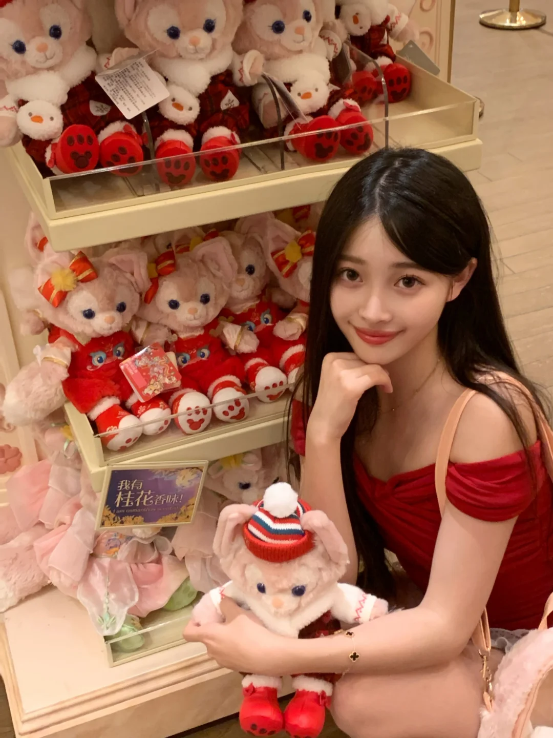 在迪士尼商店也狂拍照!🥰 红上衣和小熊维尼好适配!