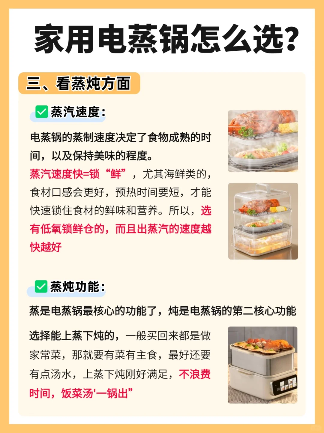 但好多朋友没做攻略随便下单买回来才发现🙅🏻♀️牛奶都要热5分钟、排骨都蒸不熟,压根没法用。📝今天橙子就给大家带来超详细的电蒸锅选购要点!