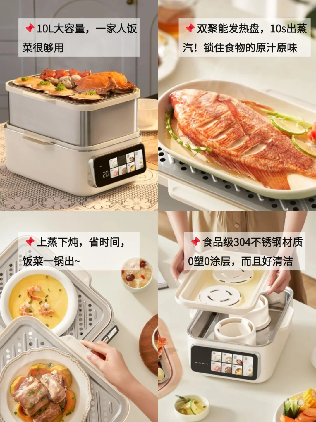 📍易清洁:选有脏净水分离的,有食品级PP材质接汁盘,净水残水分离,蒸炖不串味。