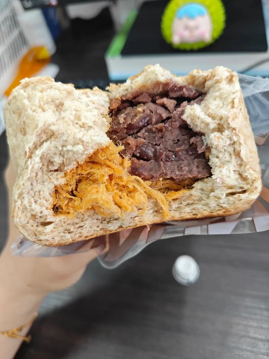 包体是全麦的,不干,我觉得还算是软的那种,很香的包体 馅料特别满!基本上都不空包,奶酪都不腻,搭配都挺好的 加热以后麻薯软软糯糯的,红豆微微甜不假甜!双薯蛋黄奶酪车,蛋黄奶酪是微咸的咸蛋黄味道,增添惊喜!而且短保,肯定是没有科技与狠活的,配料表很干净!可冲,非常可冲!!