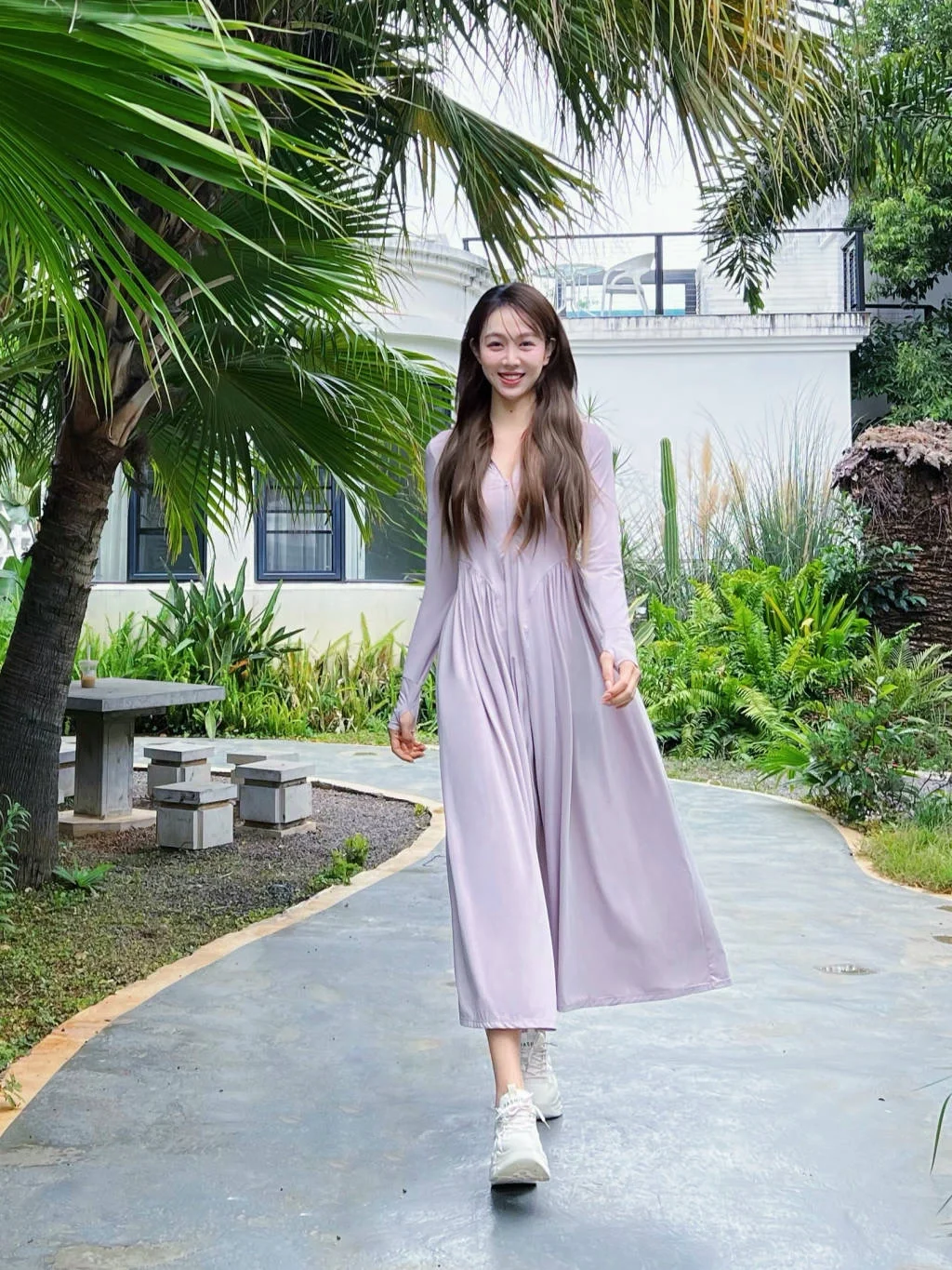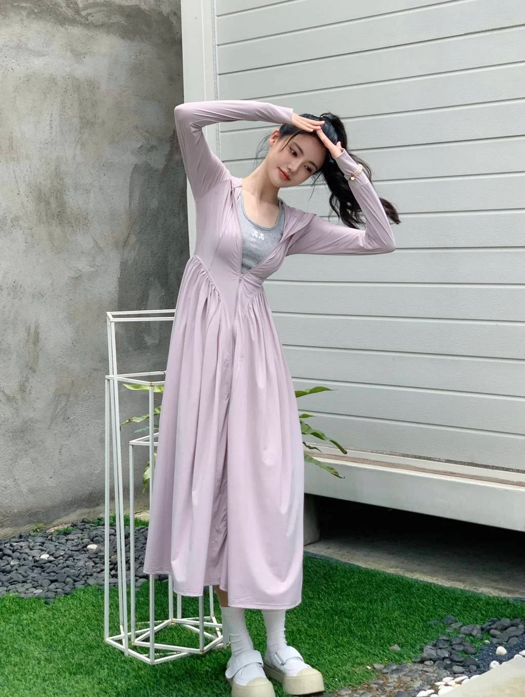 整理明星私服,发现孙珍妮 赵晴 姜妍…内娱女明星纷纷撞了同款zauo防晒连衣裙🫣! 突然发现粉紫色出奇的显嫩显白啊😍 元气满满少女感,户外拍照、穿搭清新出片不沉闷。