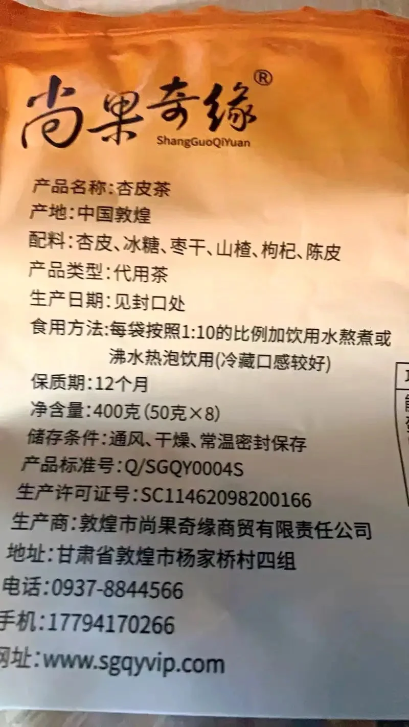 杏皮茶[黄金薯R],今天是一期甘肃敦煌美食哦~ [种草R]健康指数:🌟🌟🌟🌟 配料表:杏皮、冰糖、枣干、山楂、枸杞、陈皮 [种草R]性价比:🌟🌟🌟一大包/26r 配料表比较干净,性价比较高。 [种草R]口感:🌟🌟🌟🌟🌟 比较酸甜解腻,夏天来了也很适合,不会特别甜,当然介意有糖的减脂期姐妹可以把冰糖“手动”去除 tips:加点小冰块更好喝哦[赞R]