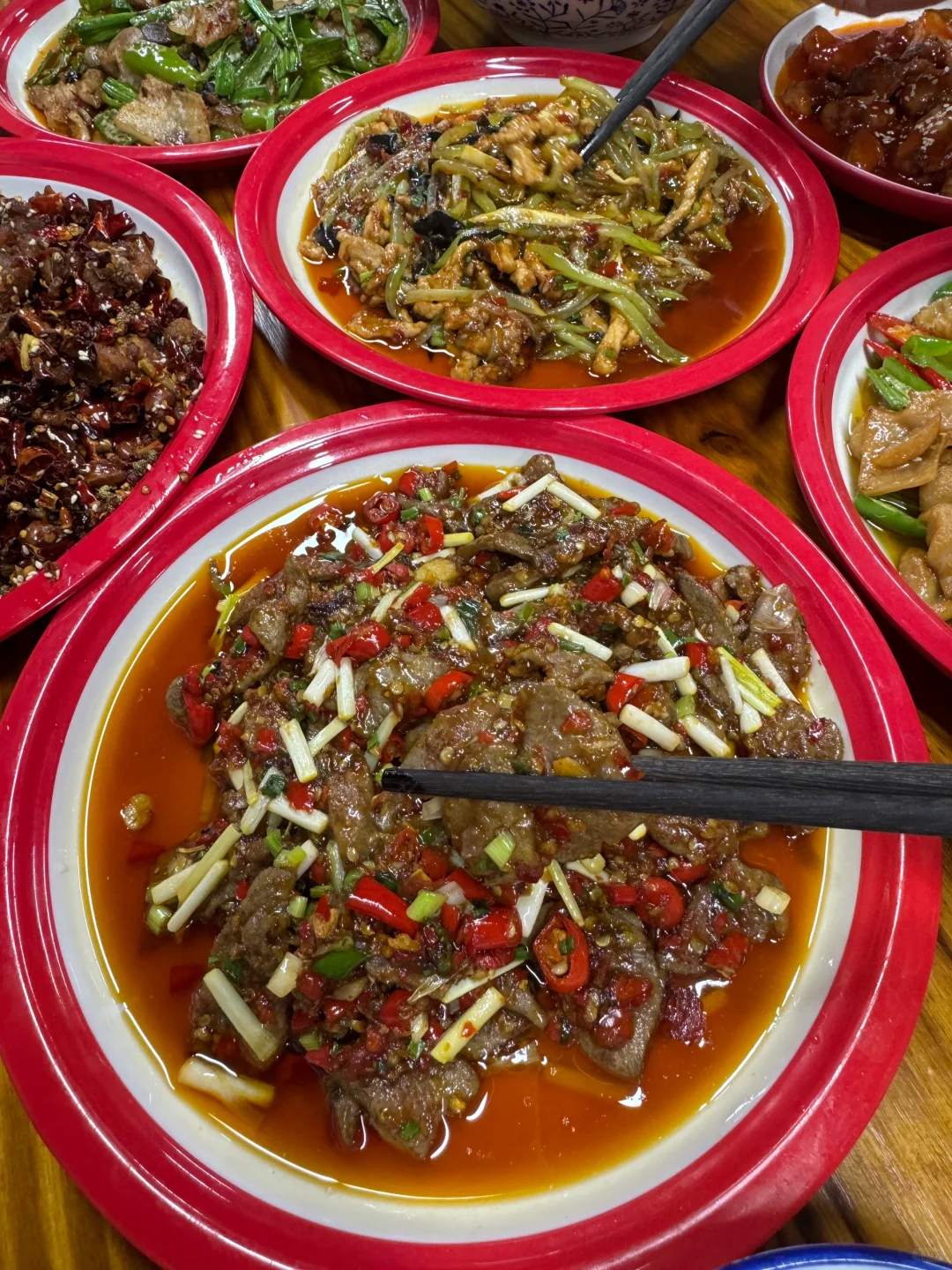 饭点真的座无虚席!!每一道菜端上来都带着满满的锅气🥹 一定要点他家的毛血旺☝🏻又嫩又入味 川香麻辣!!配饭一绝☝🏻
