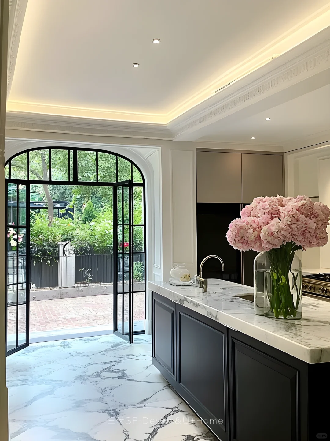 淡雅的墙漆+简单的石膏线条,安静端庄
