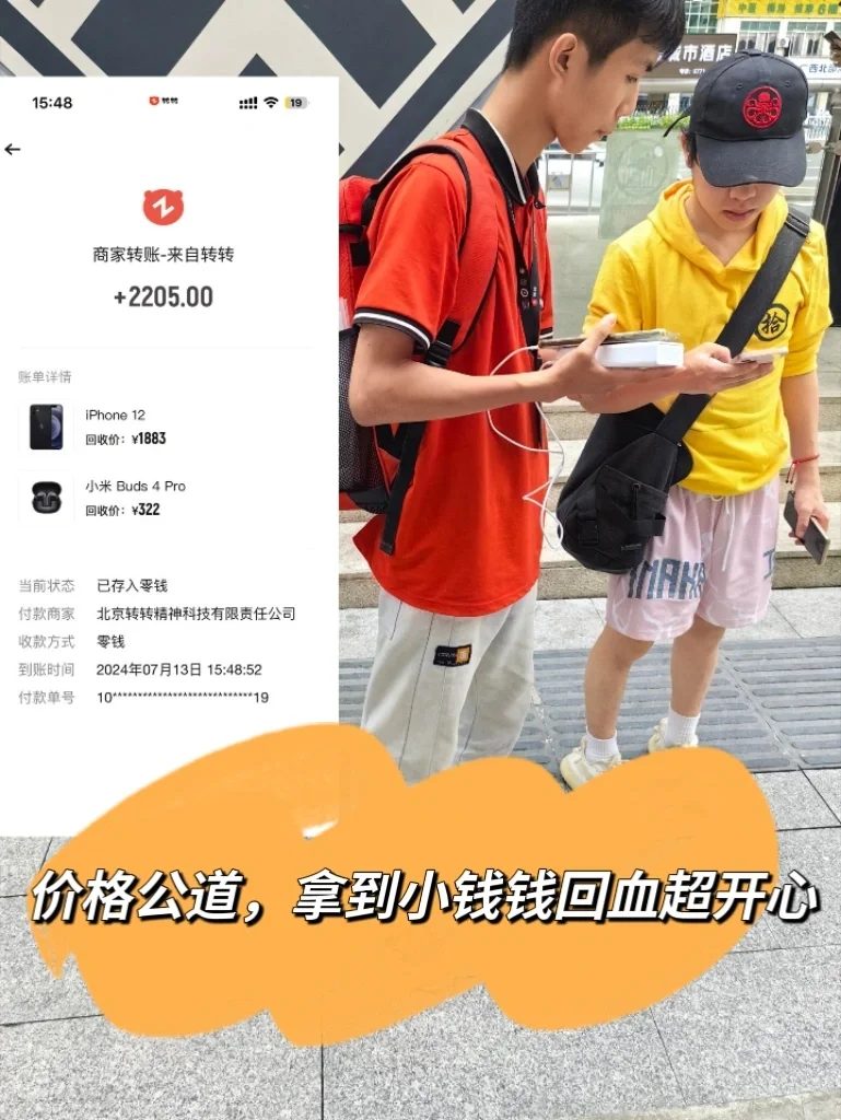 这两天我搬家,在收拾东西的时候发现了淘汰下来的iphone 12和小米 buds 4 pro耳机。它俩其实都挺好用,扔了怪可惜的,所以我就去转转上回收了。在转转App下了个回收单,小哥半个小时就到了家门口。当场检测后,他就把两千二转给我了 。我当时就震惊了,怎么这么多! 小哥笑着跟我说他上门免费,钱也是当场给。对报价不满意的话当场取消订单也是没问题的,真的要感动哭了