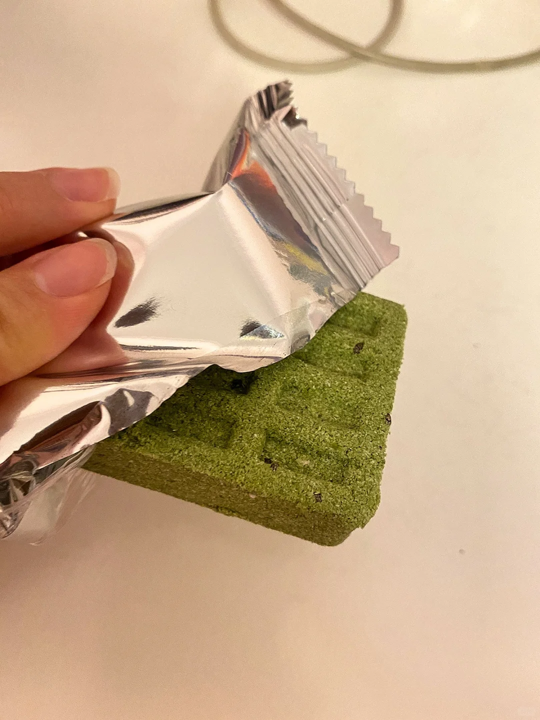 感觉糕点不会很甜腻,属于自然的清甜,很适合搭配茶喝,也可以当小点心,越嚼越香,里面有奇亚籽、绿茶粉、大麦若叶粉等材料,所以层次很丰富,同时奇亚籽带来的饱腹感也很强,减脂期拿来当早餐或者饿的时候来上一块也不会有太大的负罪感,可入!!!!