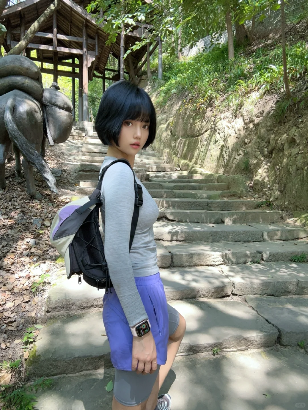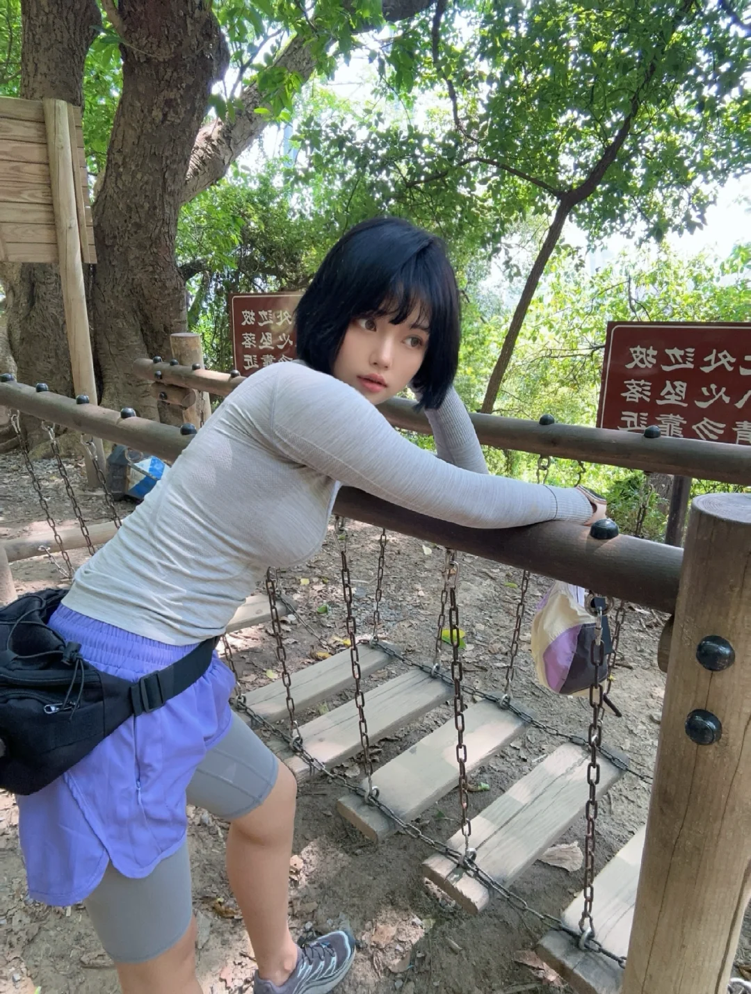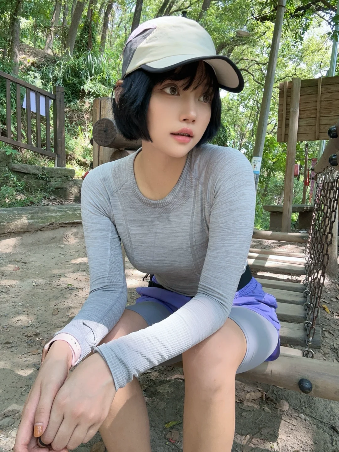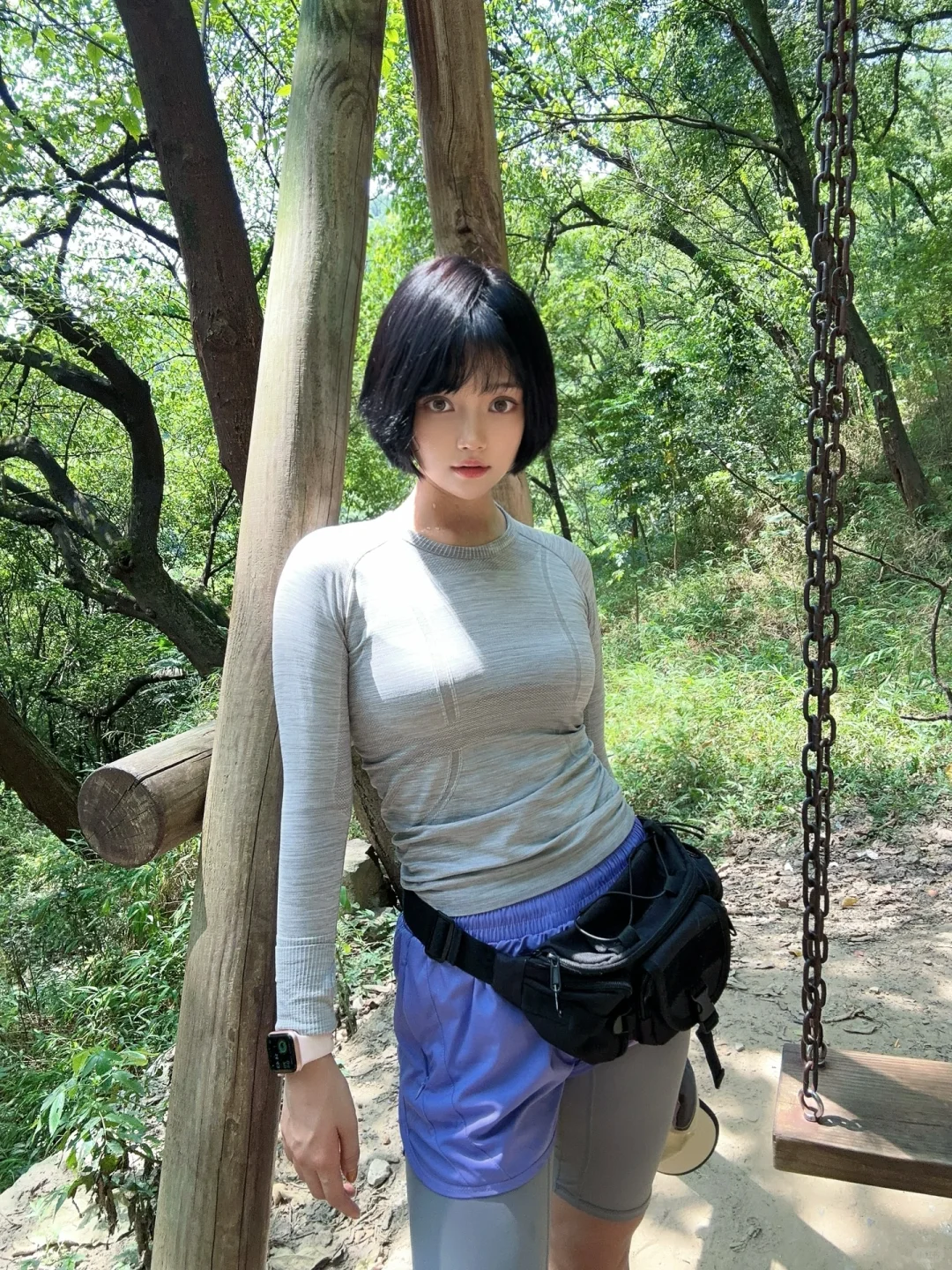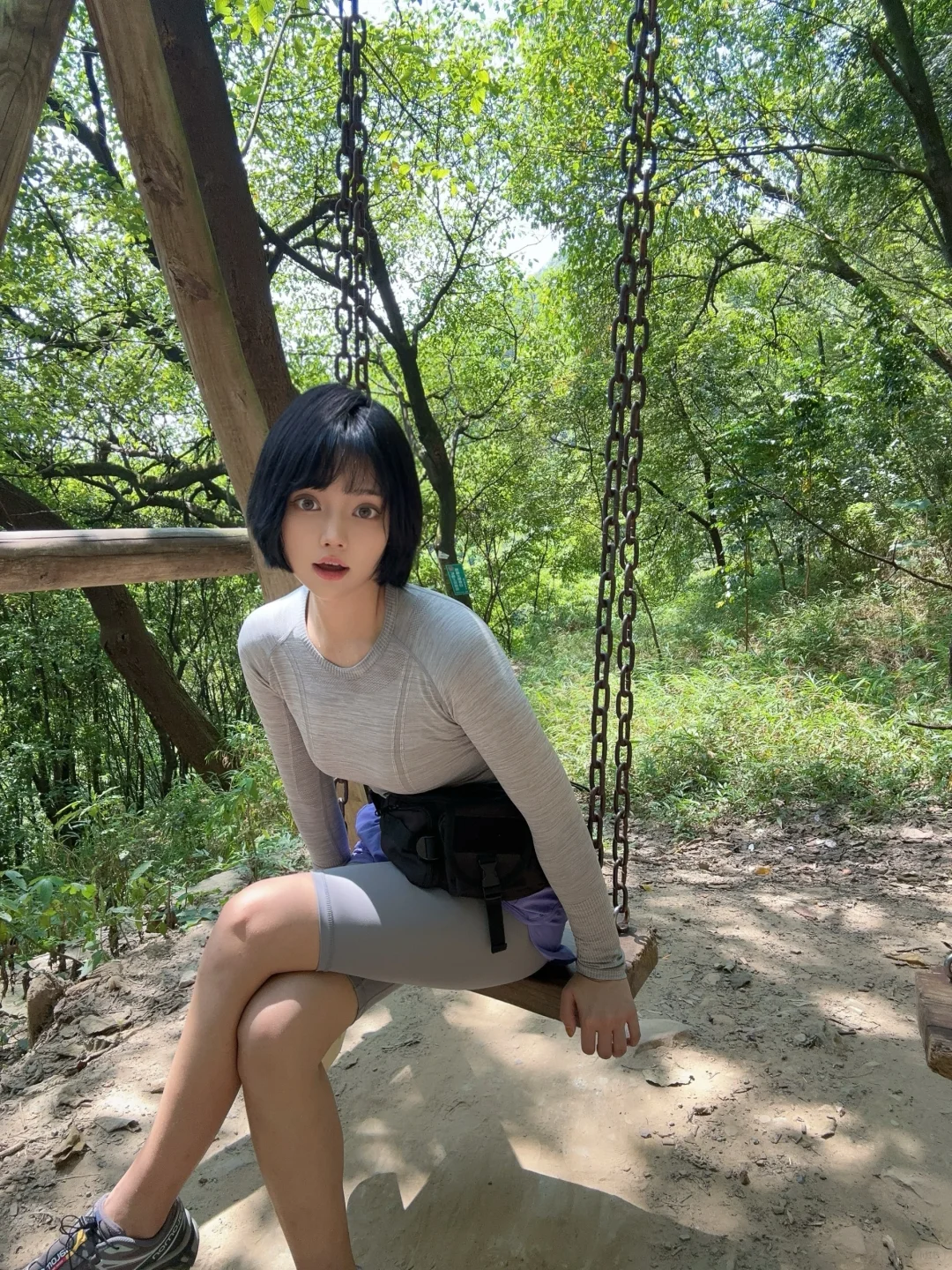 姐姐在溪边美得像幅自然画卷!黑色紧身衣勾勒出曼妙曲线,米色裤装衬得身姿挺拔,低丸