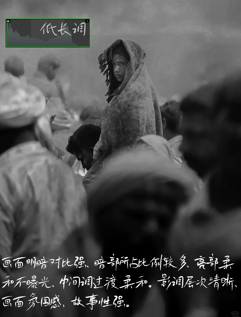 [三R]影调:画面明暗对比强,暗部所占比例较多,亮部柔