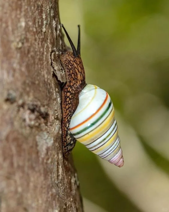 🍀糖果蜗牛是一种生活在树上,用肺呼吸的陆生蜗牛,所以也被称为树蜗牛(Tree snails)。它们靠啃食树干表皮上的苔藓和地衣为生,圆锥型的外壳长约30~60毫米,表面光滑,薄而坚固。糖果蜗牛对生存环境要求极为苛刻,所以仅仅在上述地区才有现身。