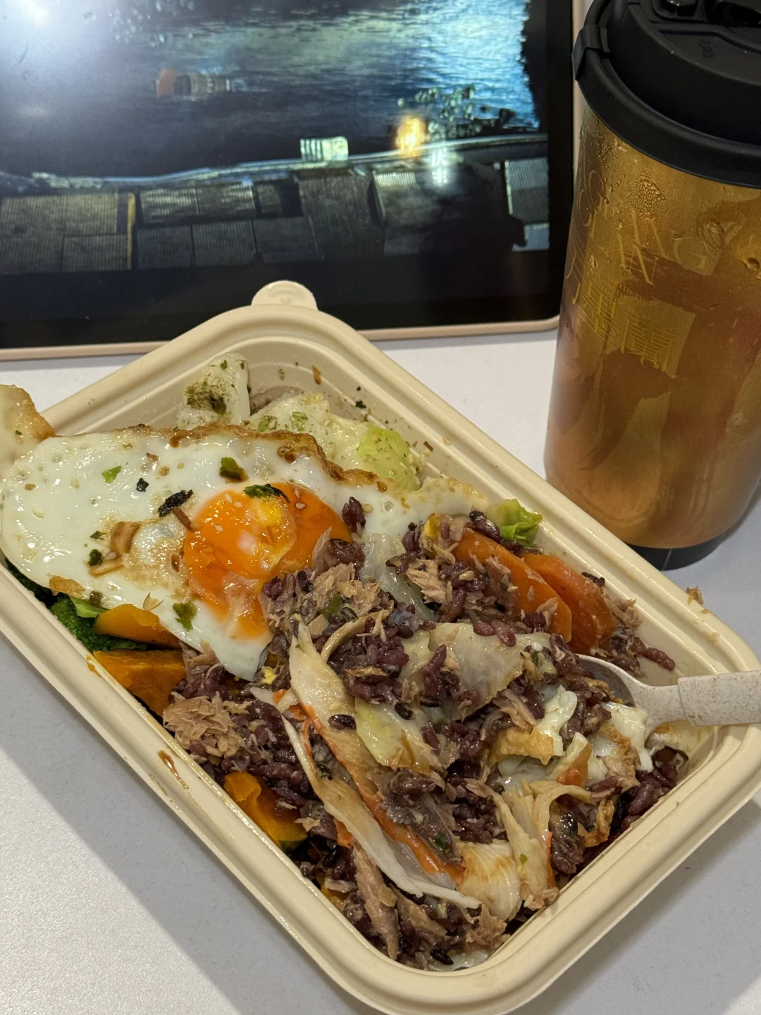 哇哦,吞拿鱼蟹柳超级碗+1太阳蛋,这组合听着就能量满满,吃完能跑马拉松!下次去南京一定要尝尝,看我能不能飞起来!😋