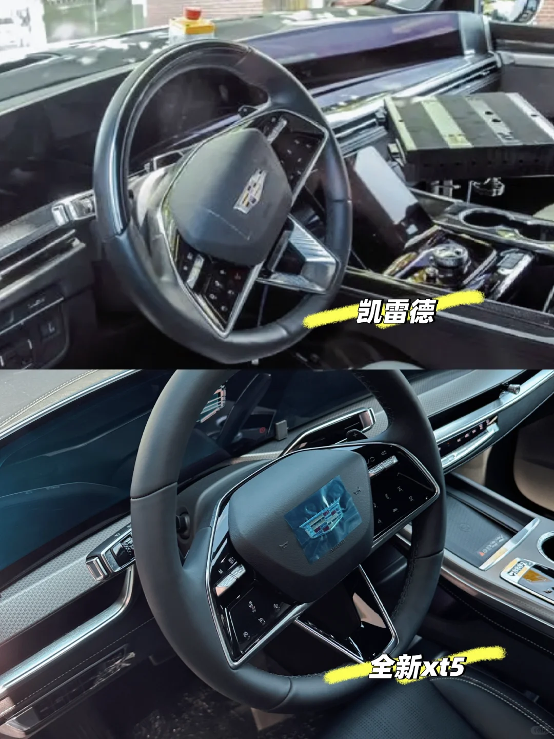 [微笑R]全新xt5和新款凯雷德的内饰设计共享很多新元素,比如相同的方向盘和怀挡,相同的门斯之盾多媒体旋钮和超大超深咖啡杯座也是统一设计。