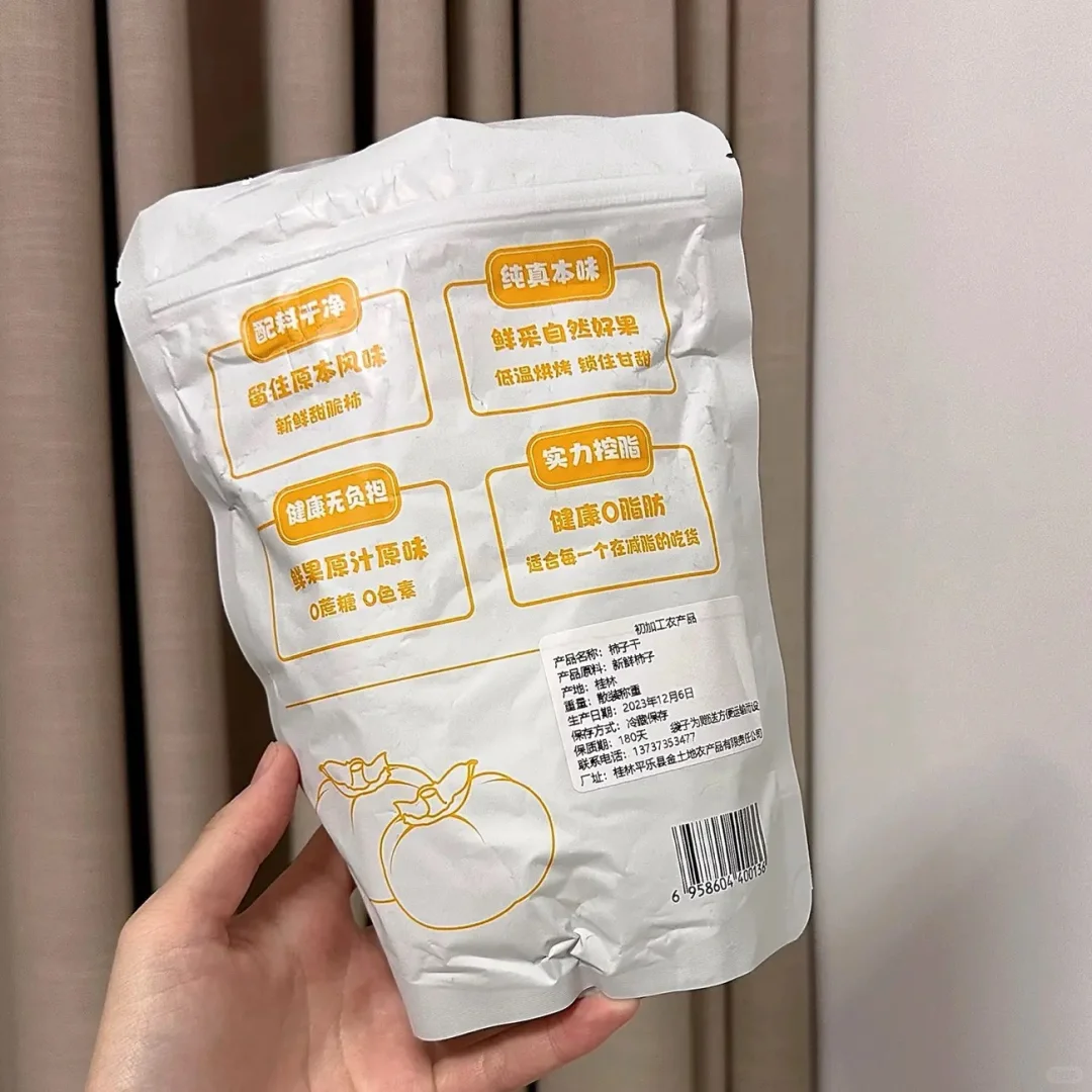 配料表:柿子,就是纯柿子晒至而成的,不是糖渍出来那种,泡水出来也很清澈。
