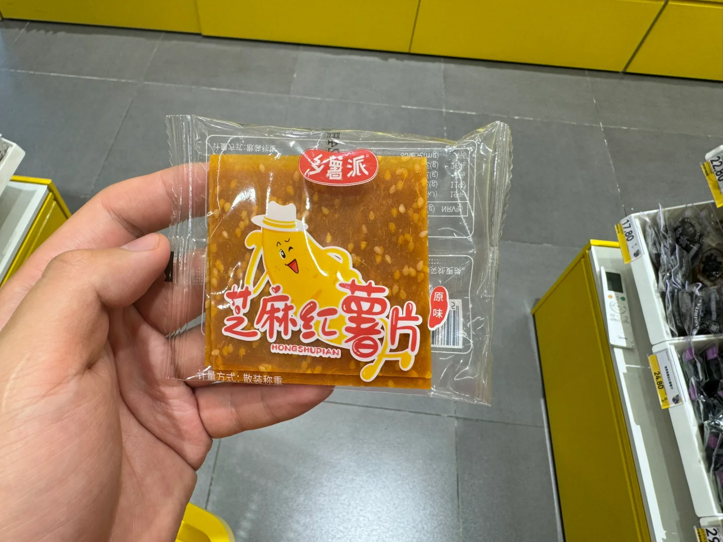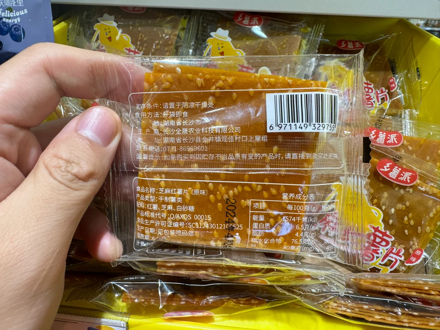 芝麻红薯片[黄金薯R],今天是一期湖南长沙美食哦,博主本人老家特产~ [种草R]健康指数:🌟🌟🌟🌟 配料表:红薯,芝麻,白砂糖 [种草R]性价比:🌟🌟🌟1包/0.99r 配料表很干净 [种草R]口感:🌟🌟🌟🌟🌟 肉眼可见的芝麻,不是很甜,而且饱腹感强,直接吃会有点嚼劲,每个都是独立包装,来不及吃早餐的时候可以吃,特别方便,配料表很干净
