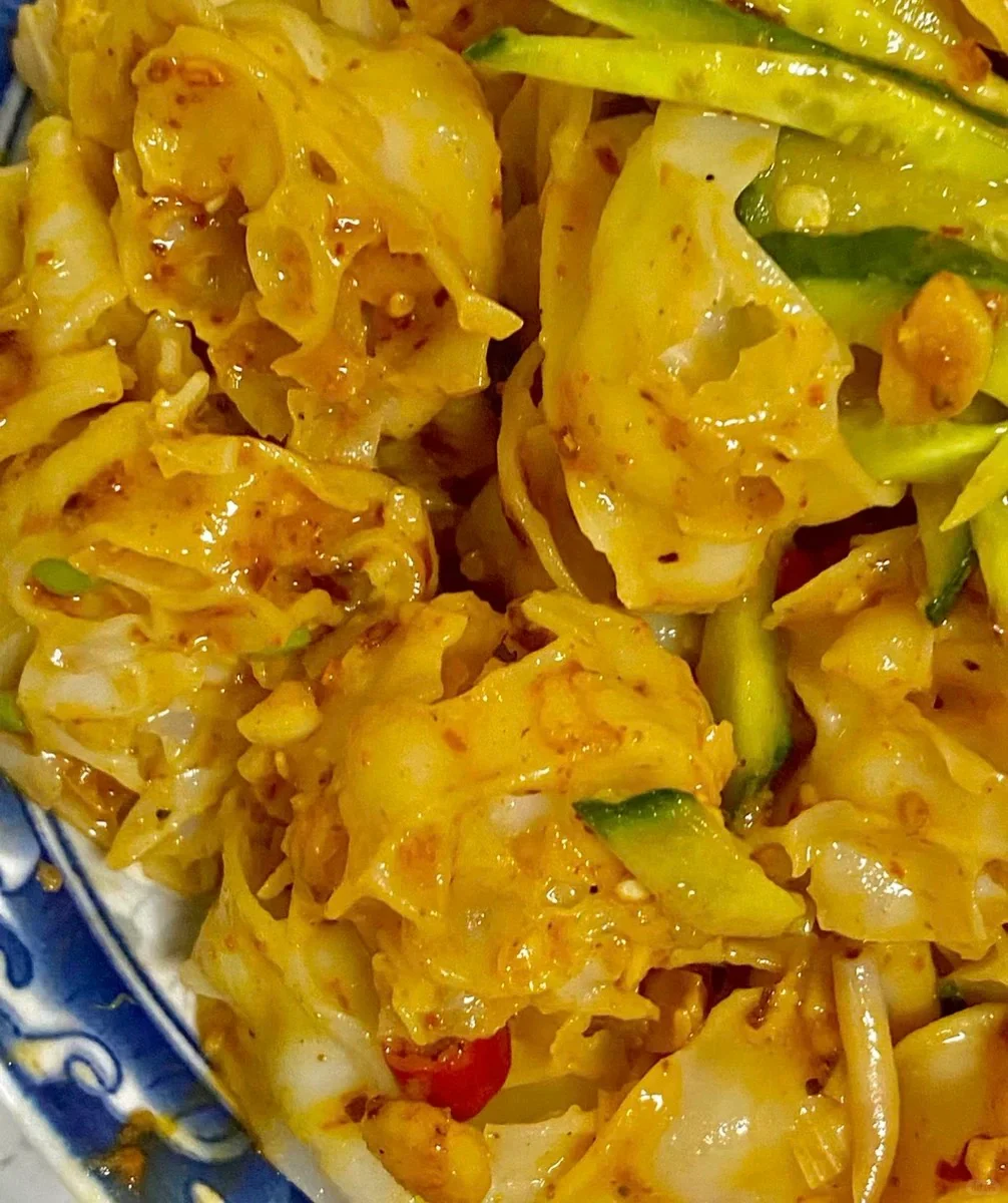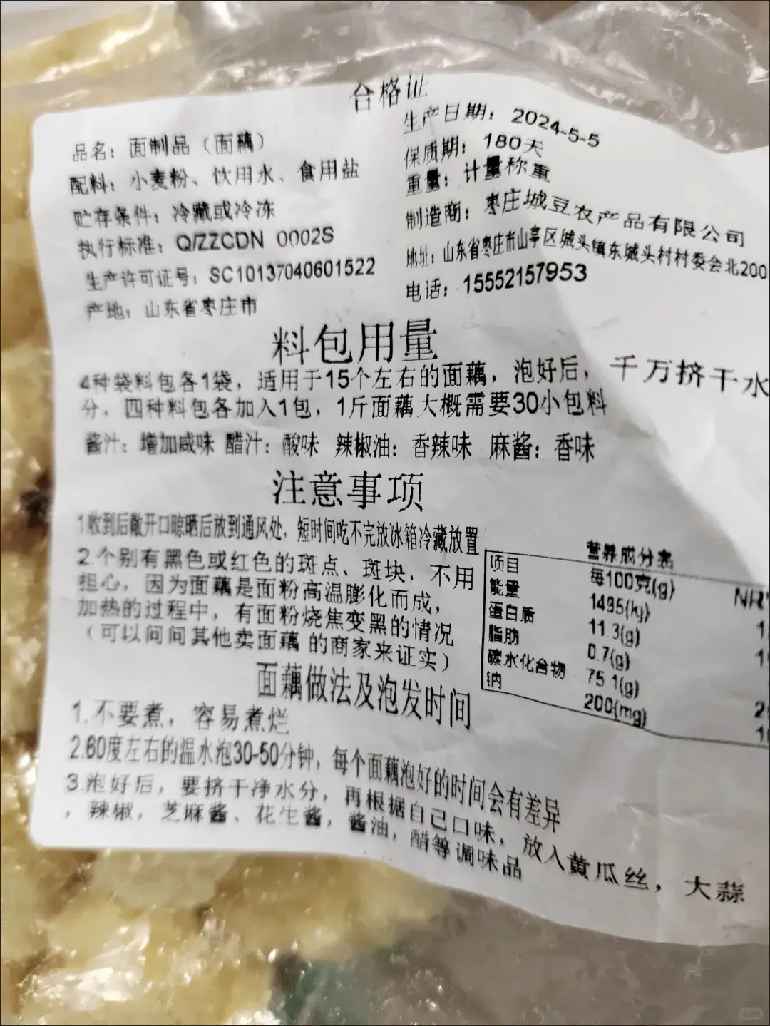 面藕[黄金薯R],今天是一期山东枣庄美食哦~ [种草R]健康指数:🌟🌟🌟🌟 配料表:小麦粉/荞麦粉,饮用水,食用盐,没有任何添加,配料表还是很干净的。 [种草R]性价比:🌟🌟🌟2斤面藕(加料包)/12.6r 性价比较高,有荞麦粉和小麦粉两种选择。 [种草R]口感:🌟🌟🌟🌟🌟 不需要加热,用热水泡发后,加上料汁即可,面藕真的太好吃了!它泡发后吸满了汤汁,口感筋道爽滑,咬下去满满的汁水在口中爆开。