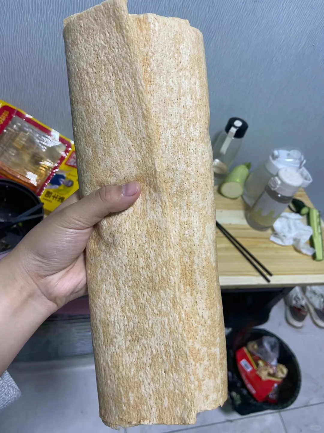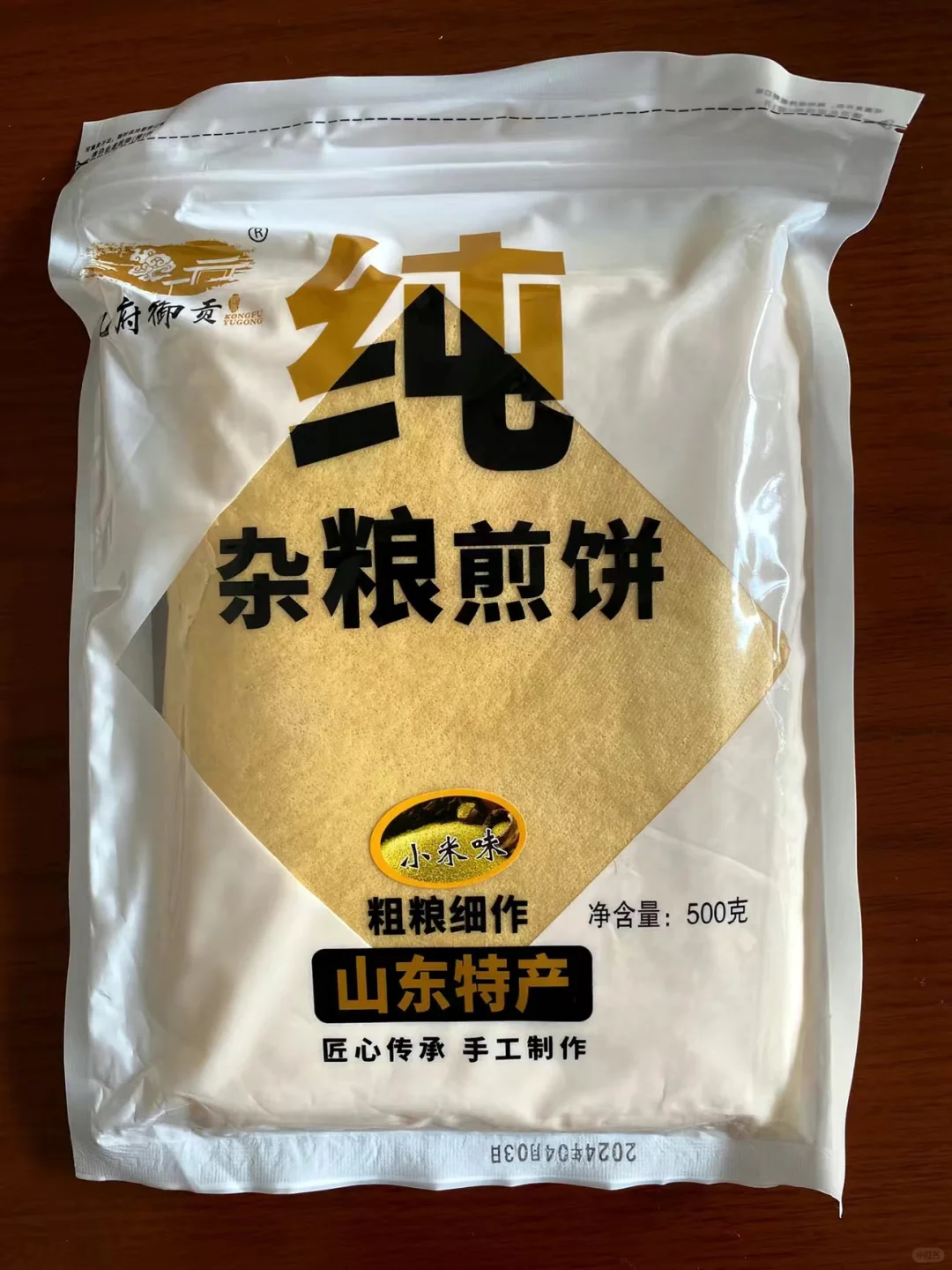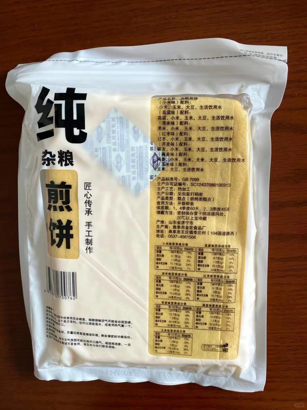 有很多个口味比如小米,高粱,黑米,红枣等,超级大一张,粗粮饱腹感很强,拿来卷饼或者卷彩都很巴适,感觉还是比较划算的,一袋感觉可以吃好一阵了。