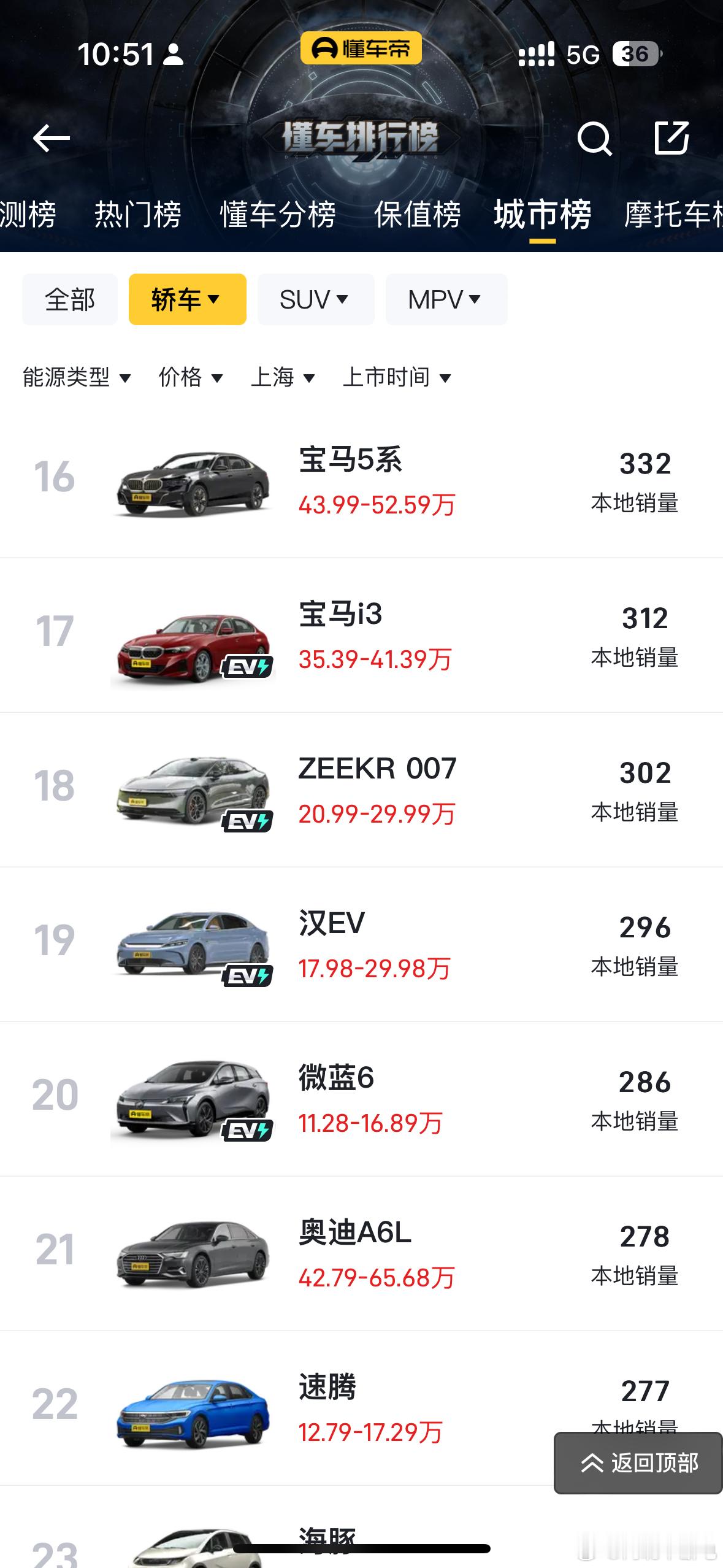 两年前汉EV在上海卖的特别好,甚至很多时候是超越Model 3的,但现在随着竞品的增多和自身产品节奏等因素,销量下滑比较严重。