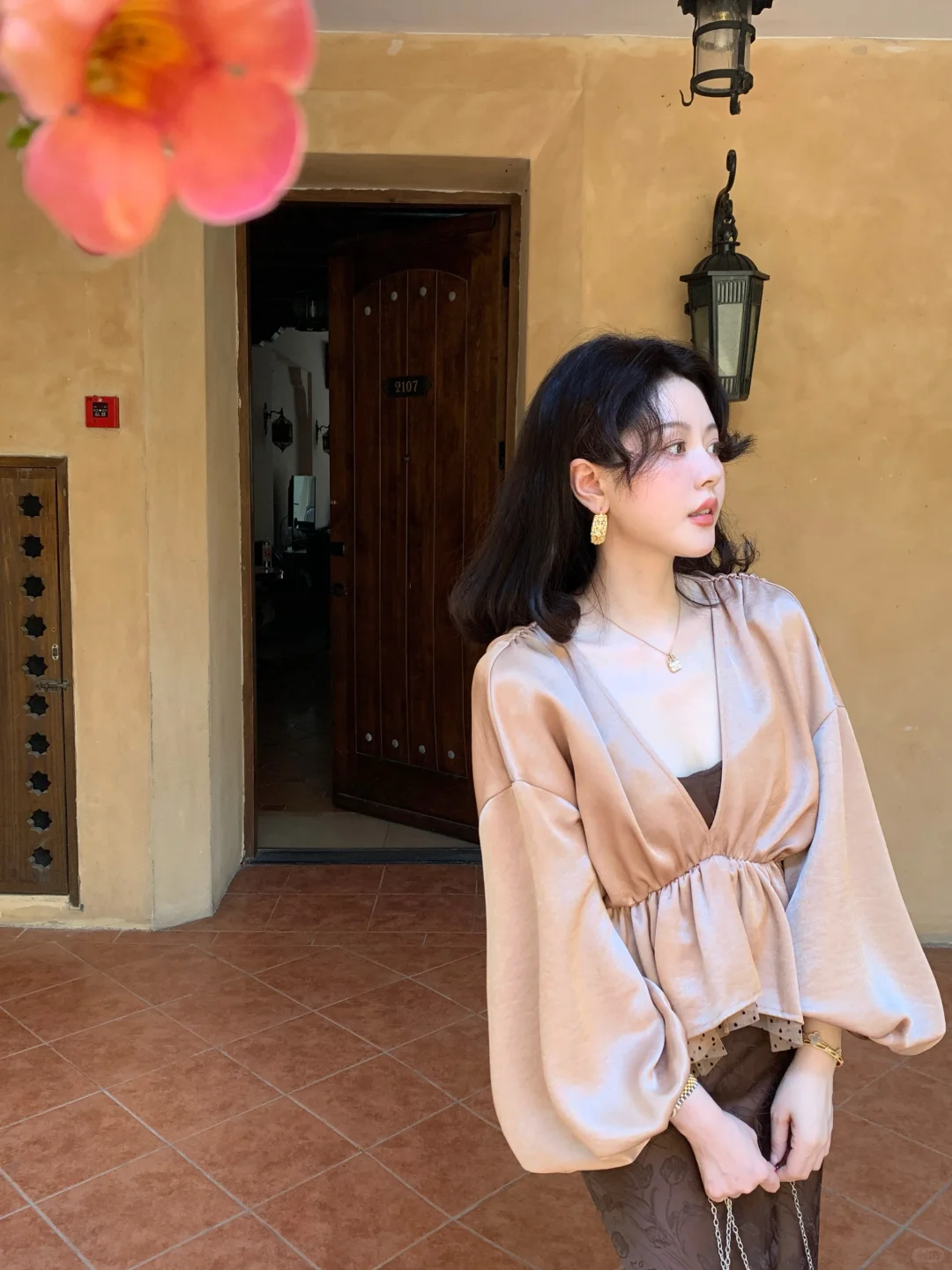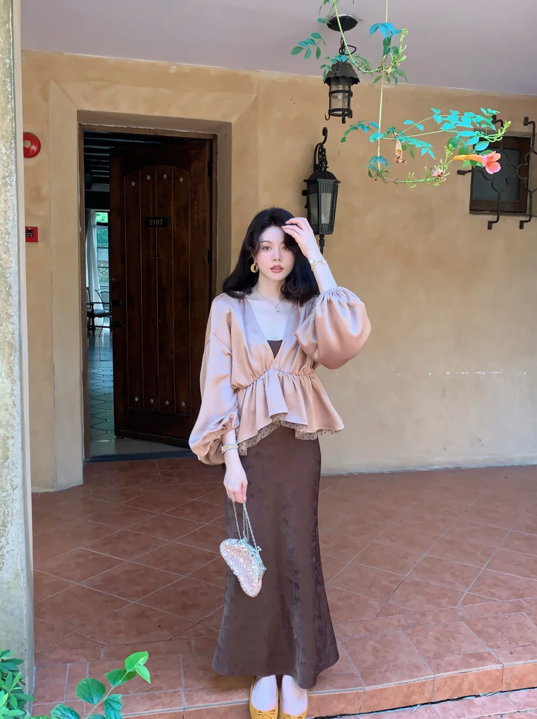 秋天色"裙搭啥配饰好?金色项链添优雅,深色贝雷帽显复古,小包包不能少,时髦全靠它