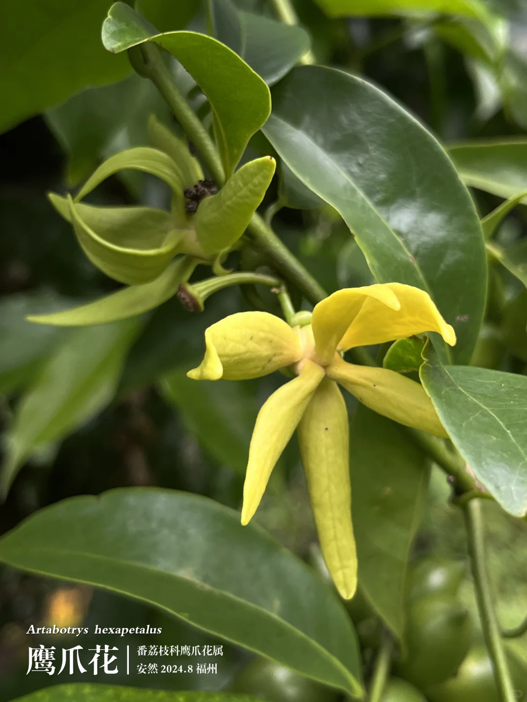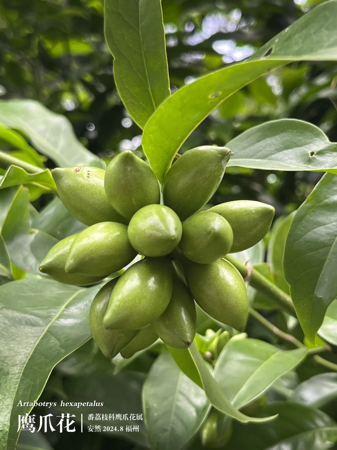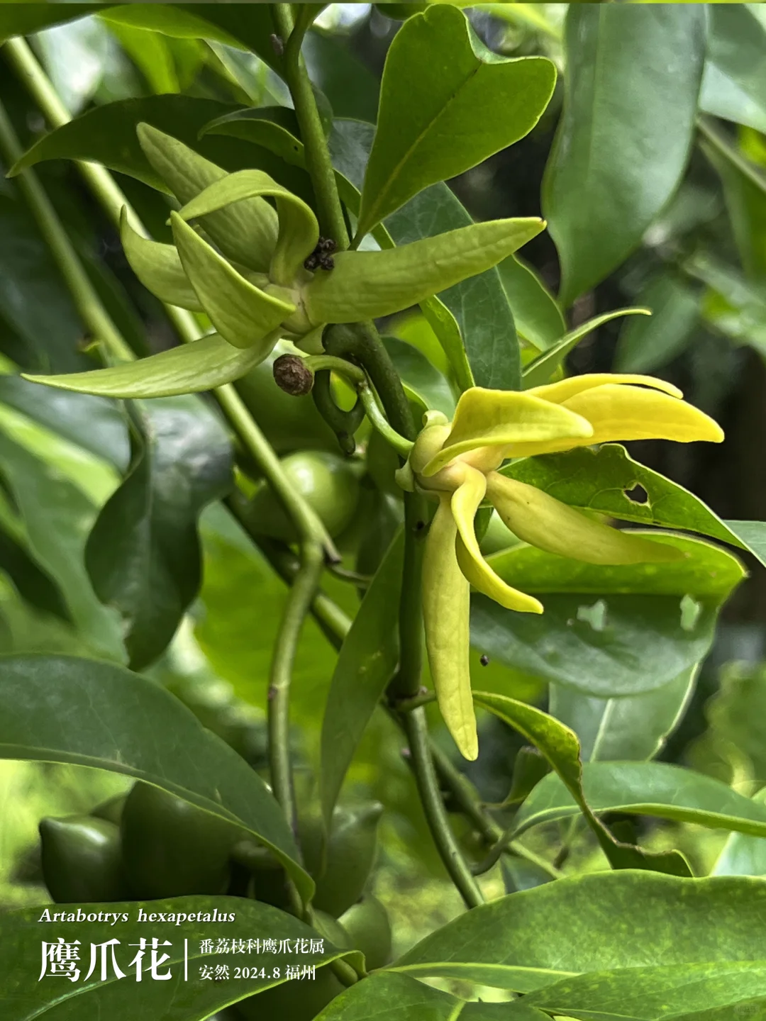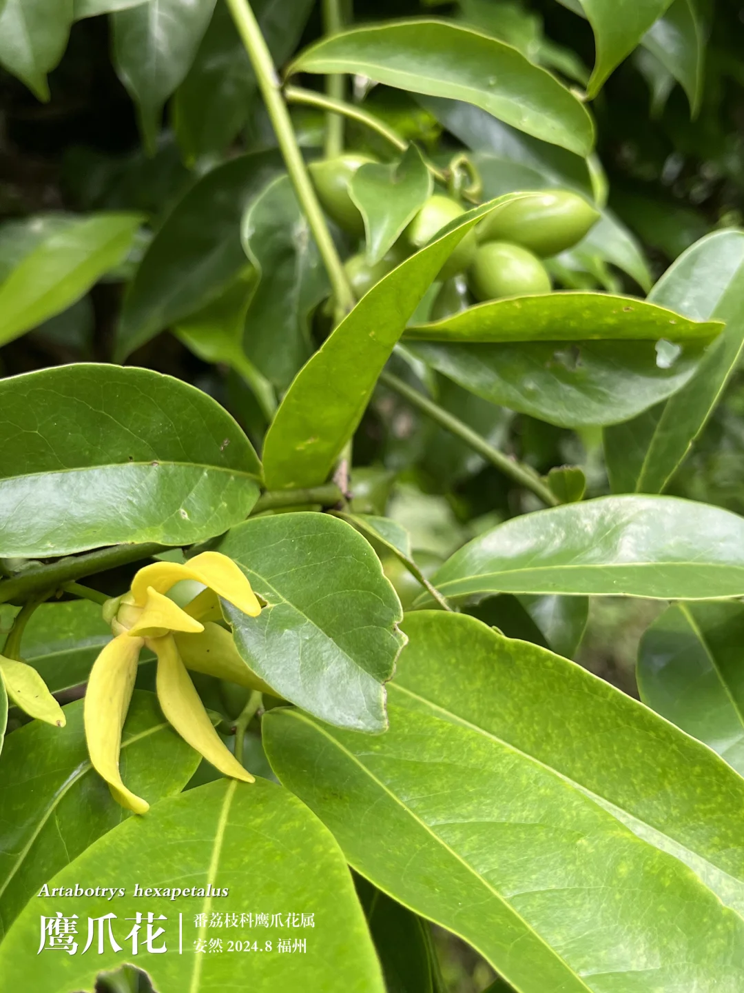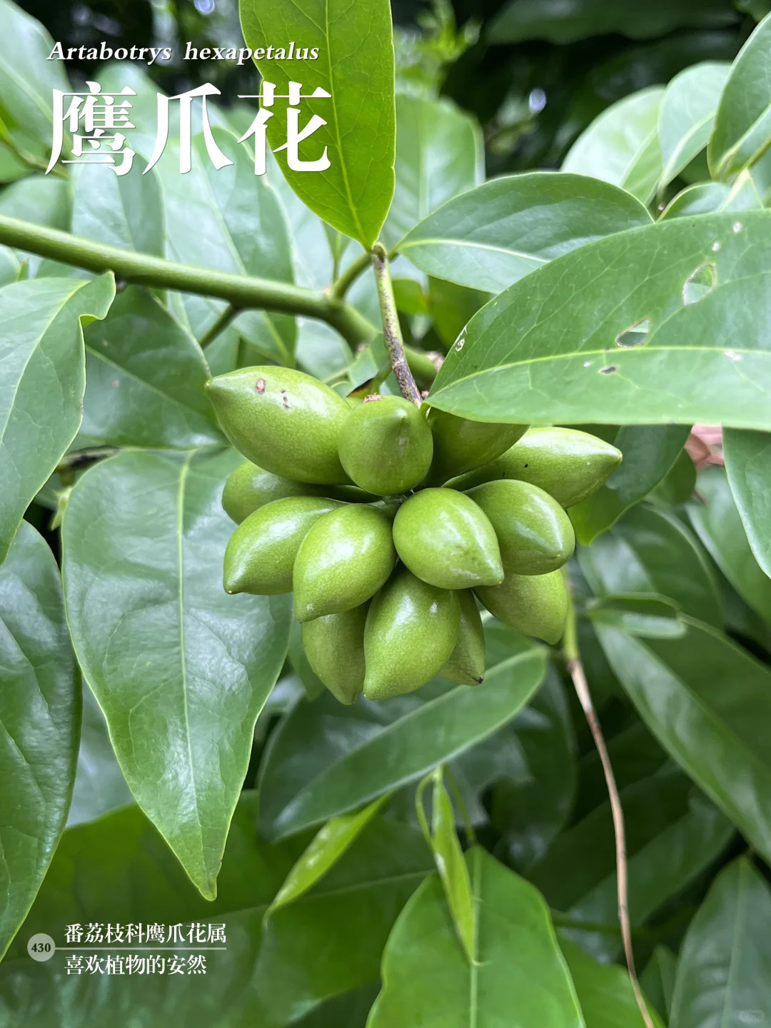 鹰爪花是一种蔓性常绿灌木,高2-4米。之前虽然见过多次,可惜从未见过花、果。没想到这次的偶遇,一并见到。