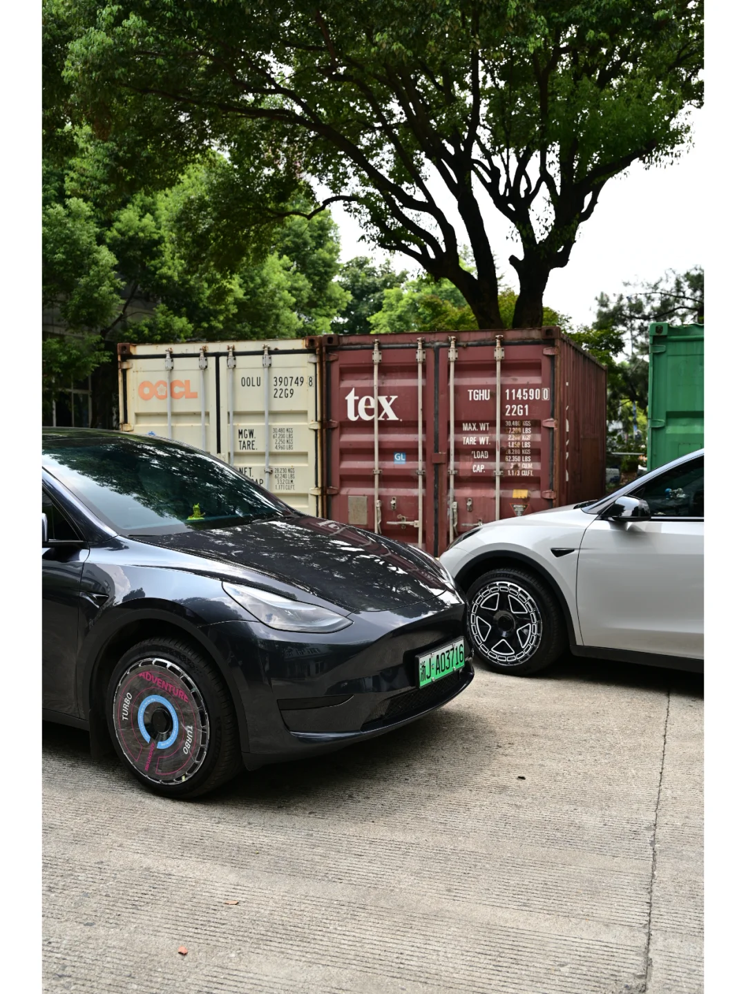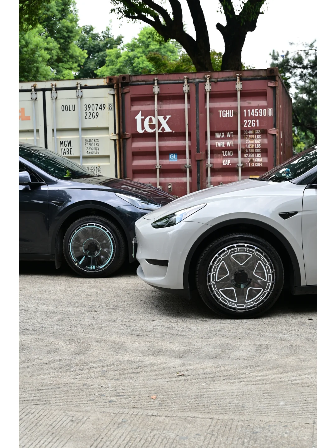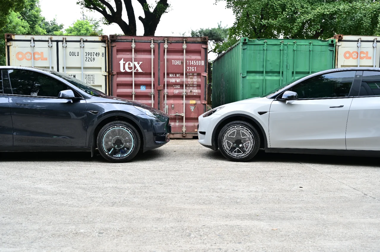 案例:车友的特斯拉model y 20寸 装配透明 轮毂盖 图案是不是都很酷!