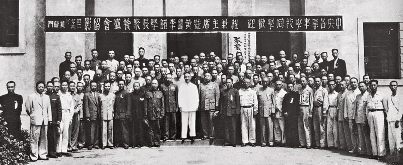 图5:1948年9月,湖南长沙,中央各军事学校同学欢迎湖南省主席程潜等黄埔学校毕业生聚餐时的合影。前排左三为陈明仁、左五为李默庵、左六为黄杰、左八为刘家树、左七为程潜