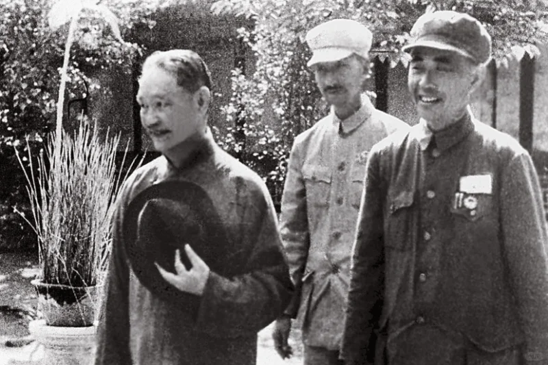 图7:1949年9月,程潜(左)、陈明仁(右)和李明灏(中)应邀出席中国人民政治协商会议期间,在中南海留影
