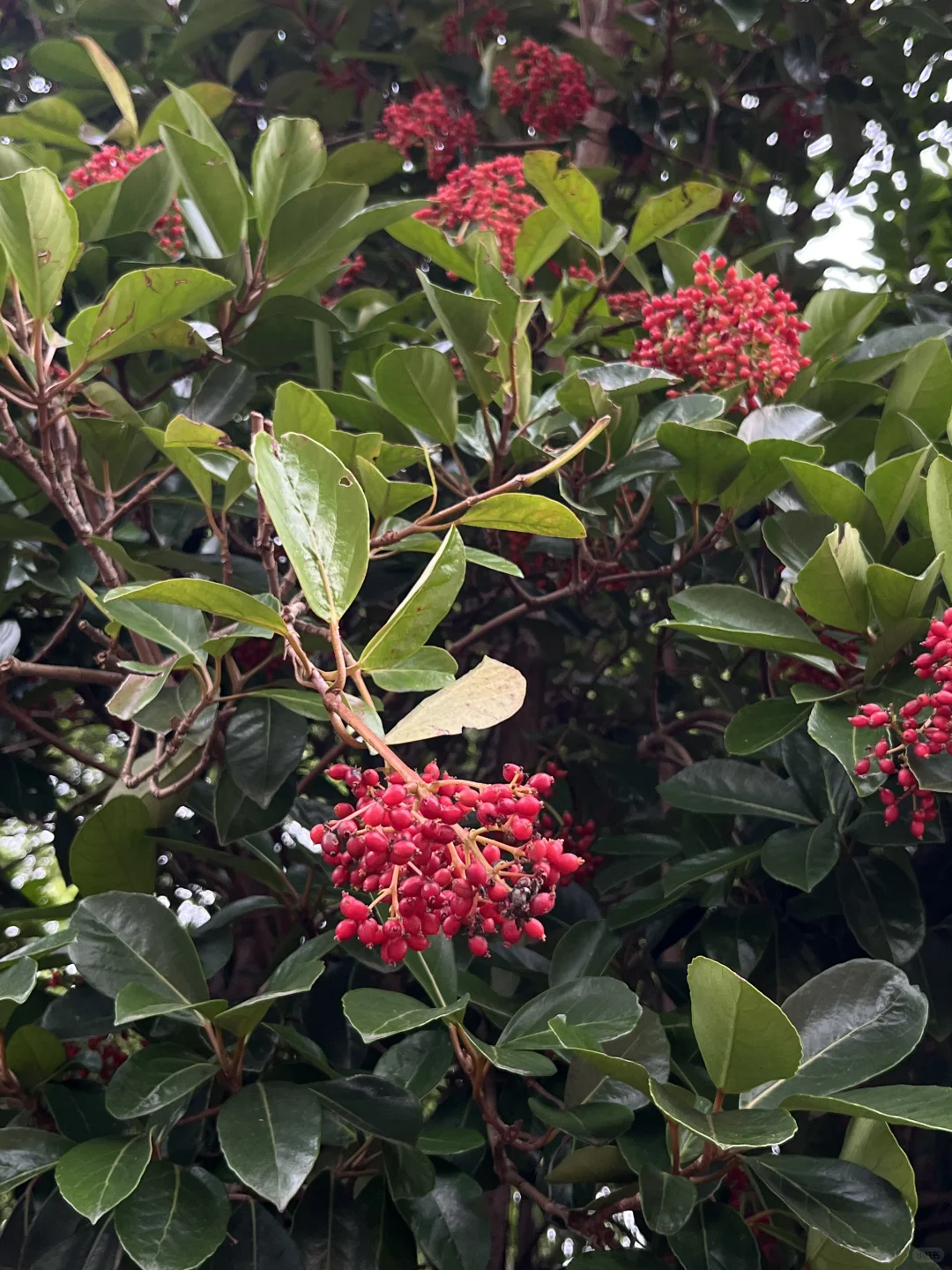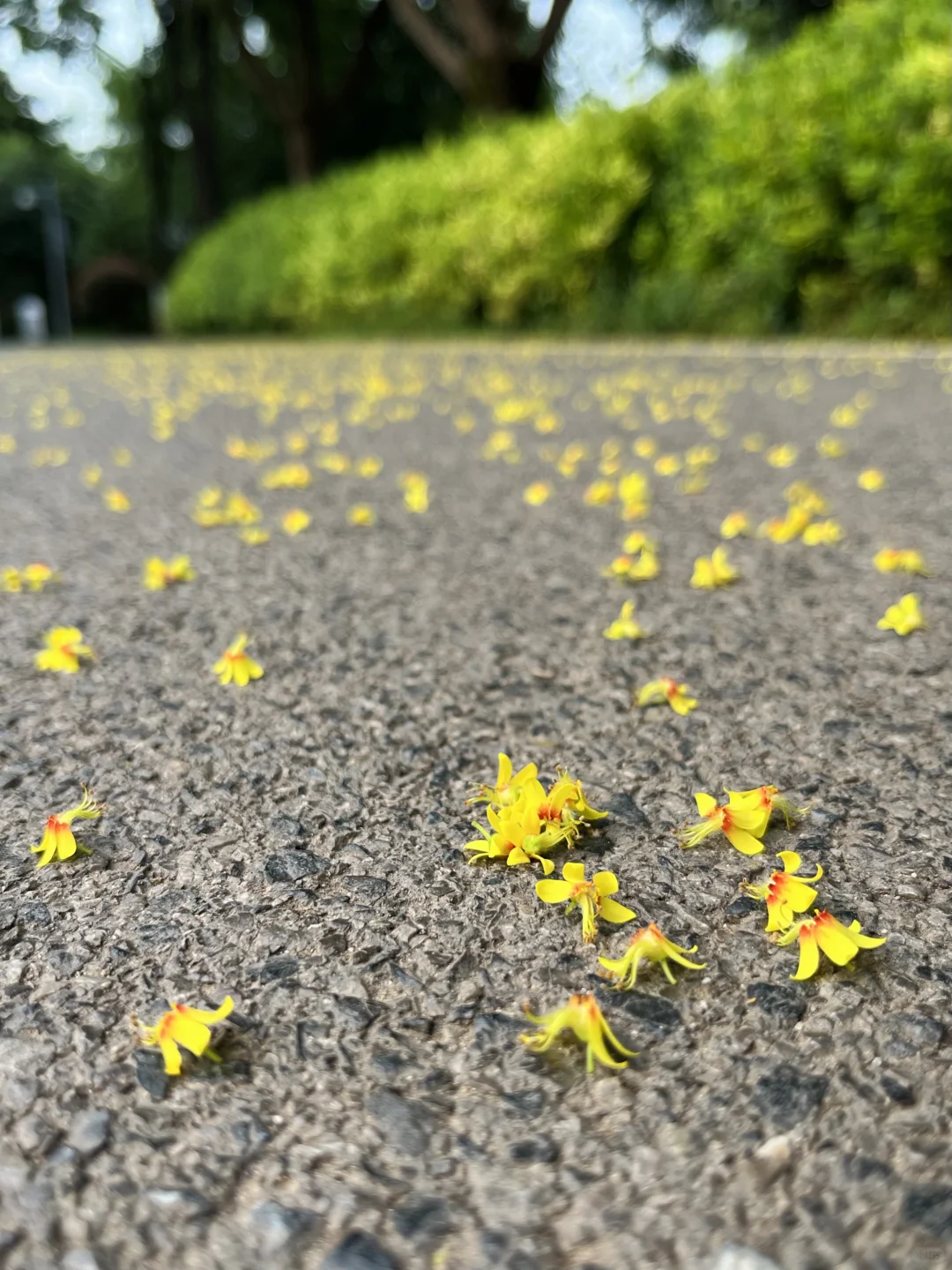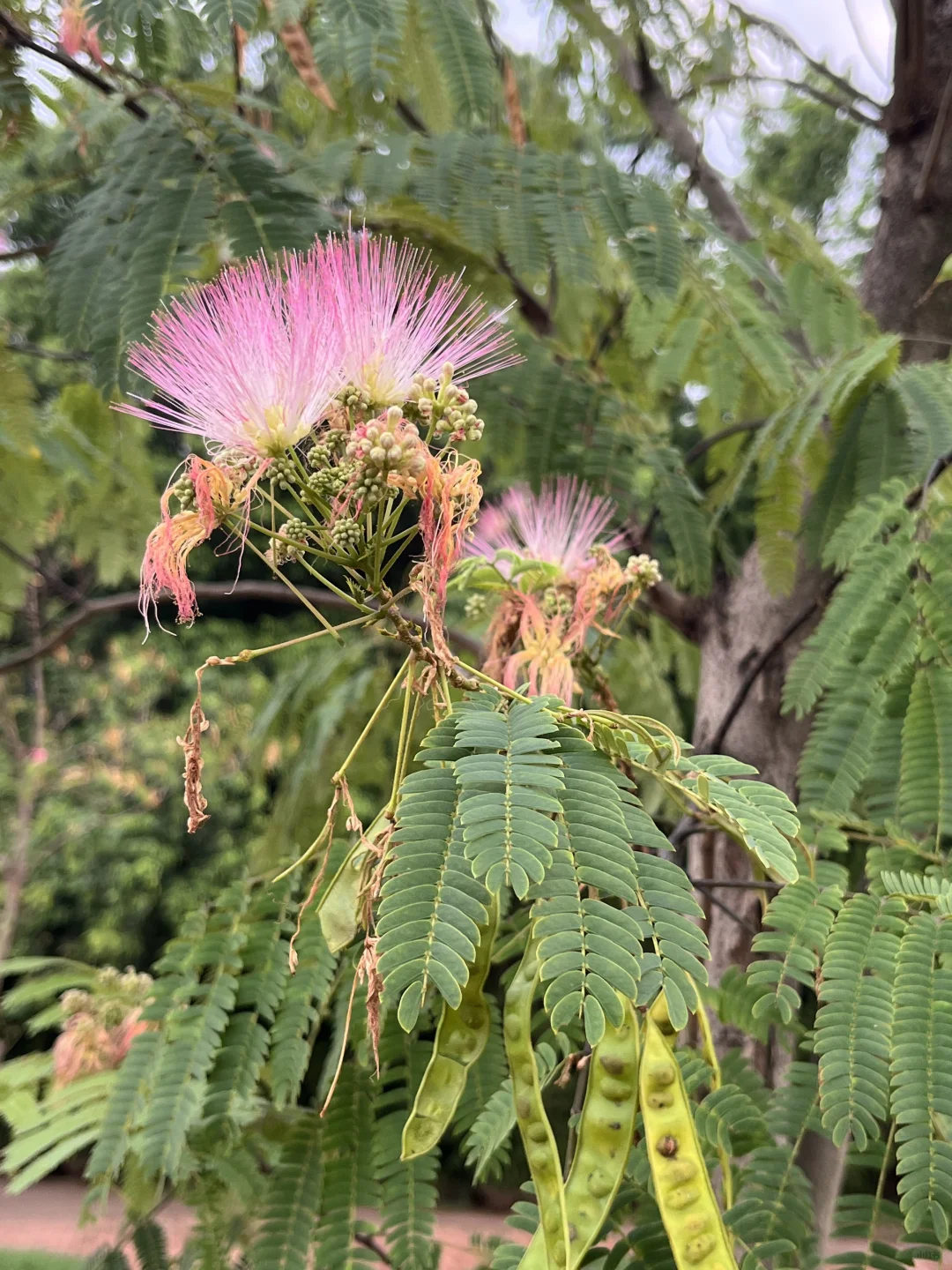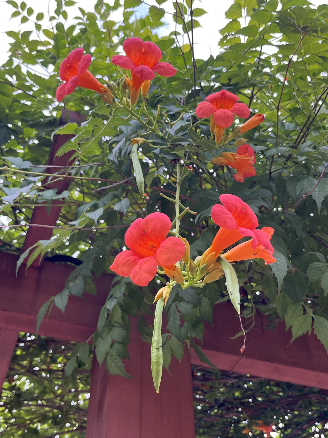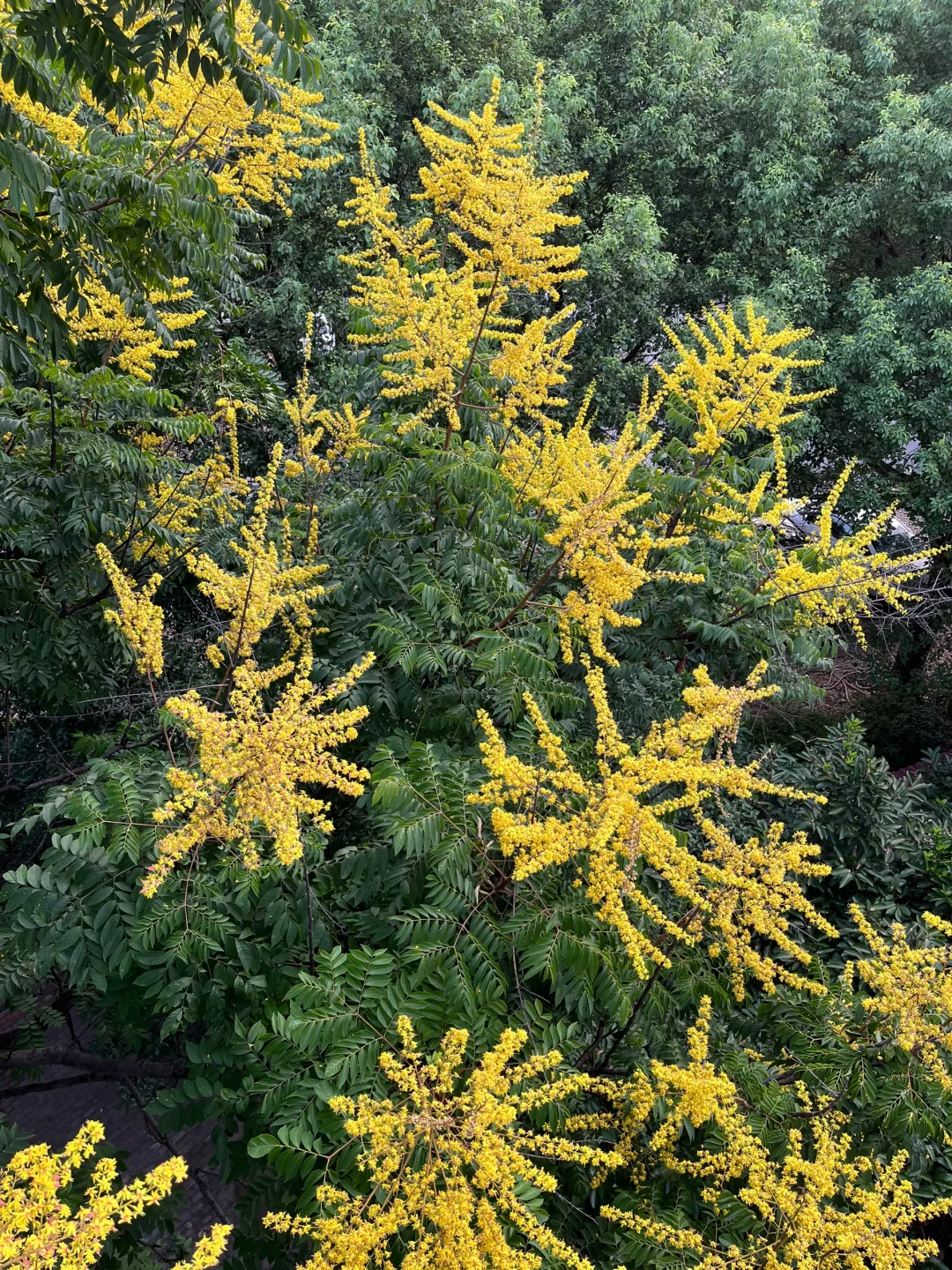栾树开黄花,珊瑚树结红果,美国凌霄开红花,合欢也在展露笑颜,各色紫薇争奇斗艳,龙爪槐的花也羞羞答答。