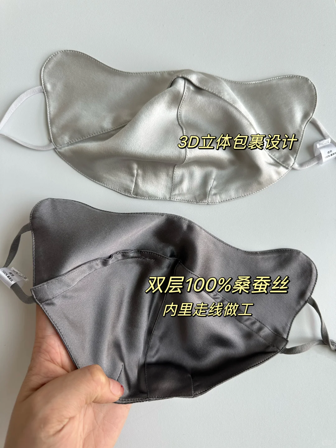 [二R]整一件都是100%桑蚕丝&A类婴儿安全级别面料,肤感是那种柔软丝滑、轻薄透气的触感,吸汗透气性是纯棉的1.5-2倍,戴在脸上很清凉,不会闷汗闷热!