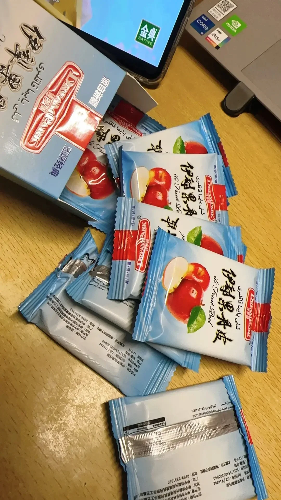 新疆果丹皮[黄金薯R],今天是一期新疆特产哦~[派对R] [种草R]健康指数:🌟🌟🌟🌟🌟 配料表:苹果,就是苹果熬制而成,没有科技与狠活 [种草R]性价比:🌟🌟🌟🌟一袋(200g)/9.98r 比较划算,有草莓和椰枣两种口味,性价比还是比较高的~ [种草R]口感:🌟🌟🌟🌟🌟 个人比较喜欢椰枣味,不管是韧劲,嚼劲,酸甜口都比较适宜,不是很甜,稍有粘牙也是凸显果肉质地的厚实柔软细腻!每个独立包装,吃不完也很好收纳,妈耶,太好吃了!