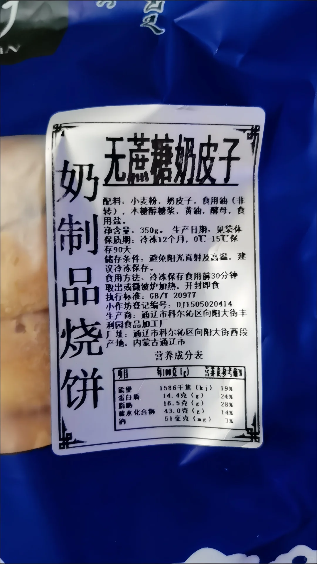 配料表有:小麦粉,奶皮子,食用油(非转基因),木糖醇糖浆,黄油,酵母,食用盐,配料表非常干净的,糖也是用的代糖,一点都不甜腻。奶制品脑袋狂喜!!!