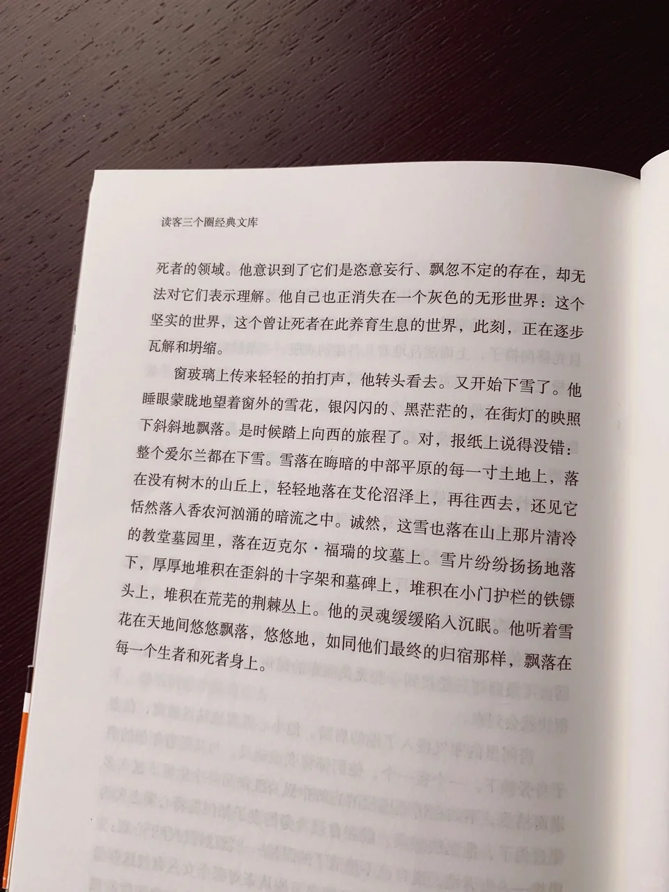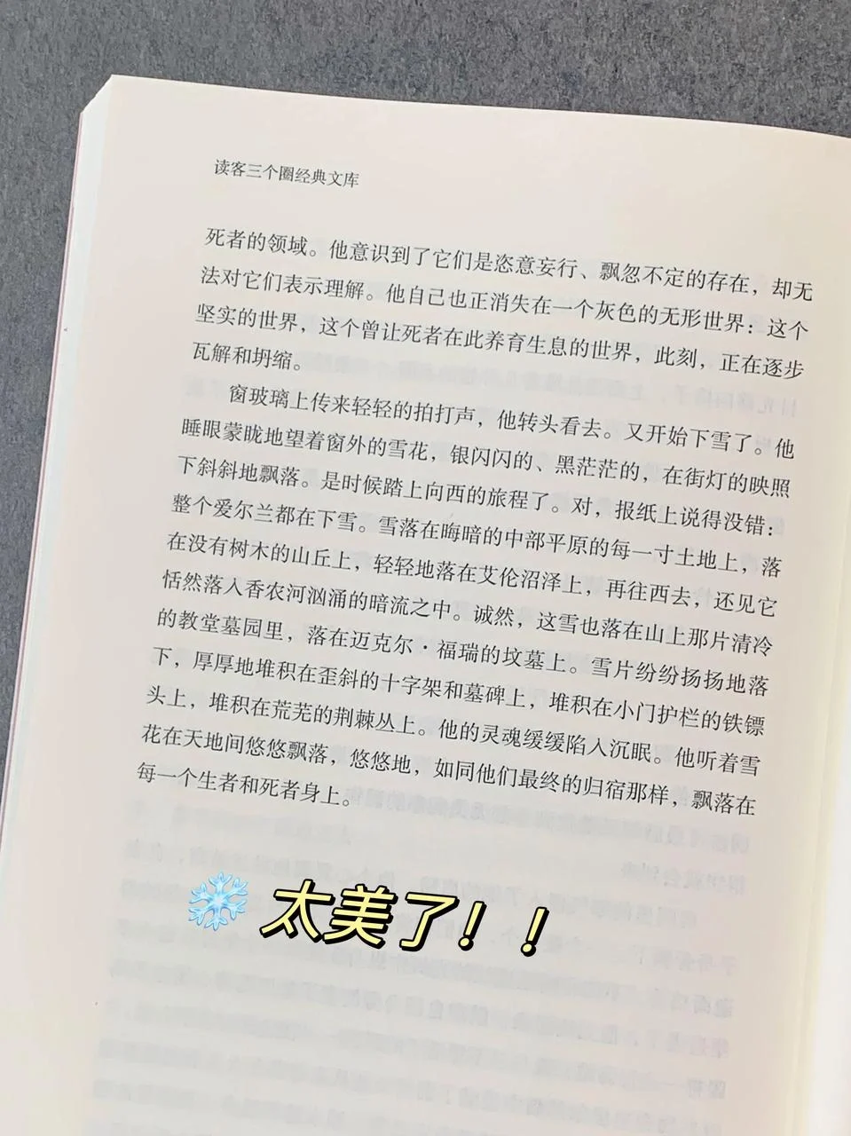被这种天才般的笔法震撼到了,这本书到处都是这样的文字,看起来轻轻巧巧、却几句话就勾勒出一个氛围感拉满的场景或者比喻,就像在看一部爱尔兰雪夜的文艺片。这篇故事中确实有对雪的描写,具有重要的象征意义。
