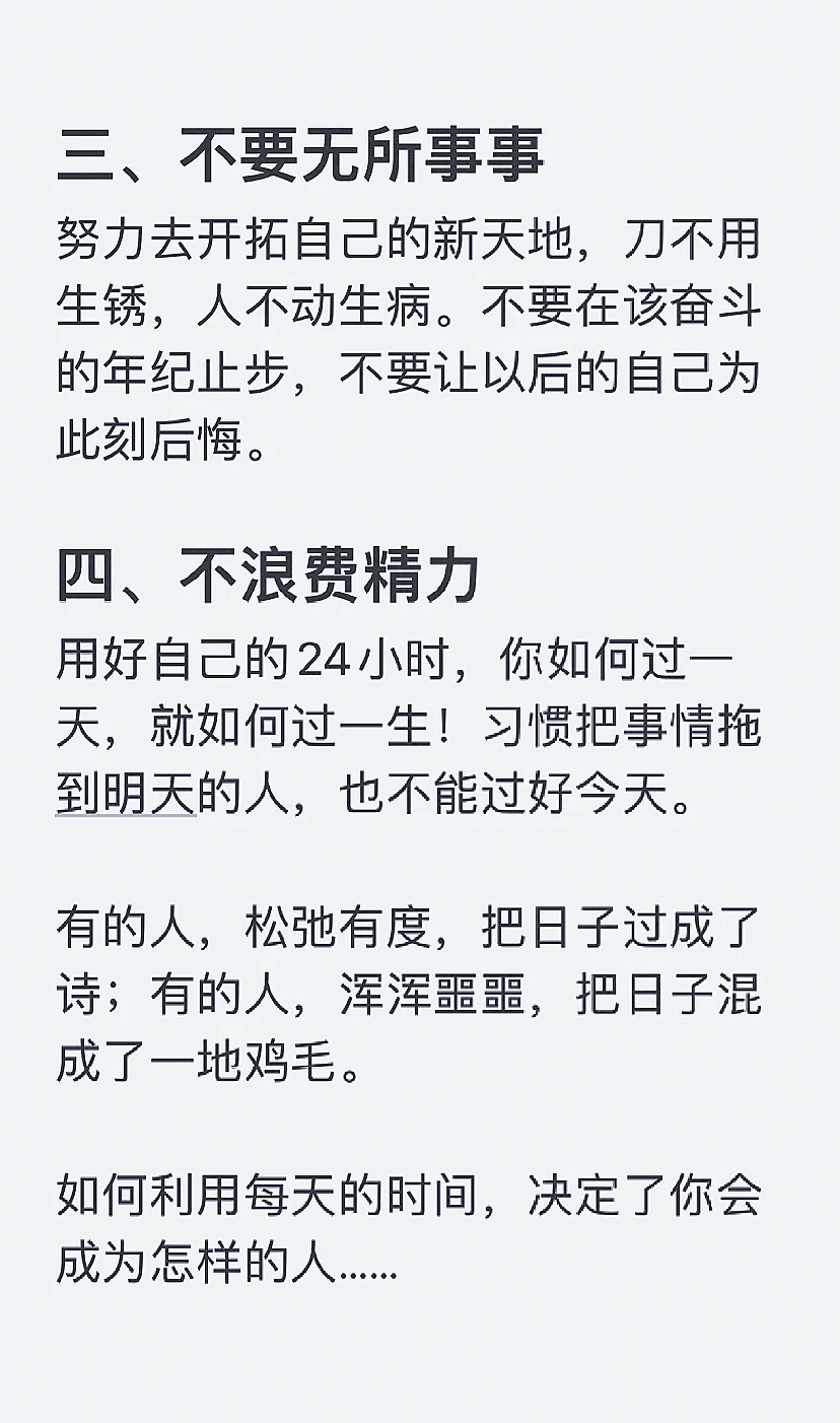 用好自己的24小时,你如何过一天,就如何过一生!习惯把事情拖到明天的人,也不能过好今天。